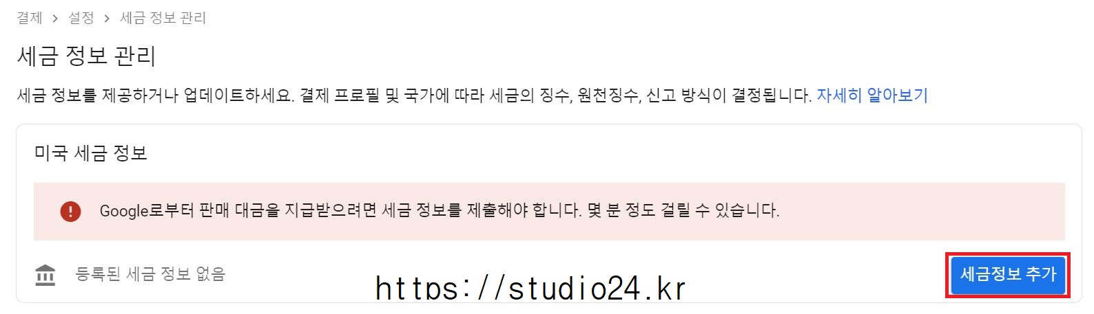 혹은 세금 정보관리 메뉴에서 세금정보 추가 클릭