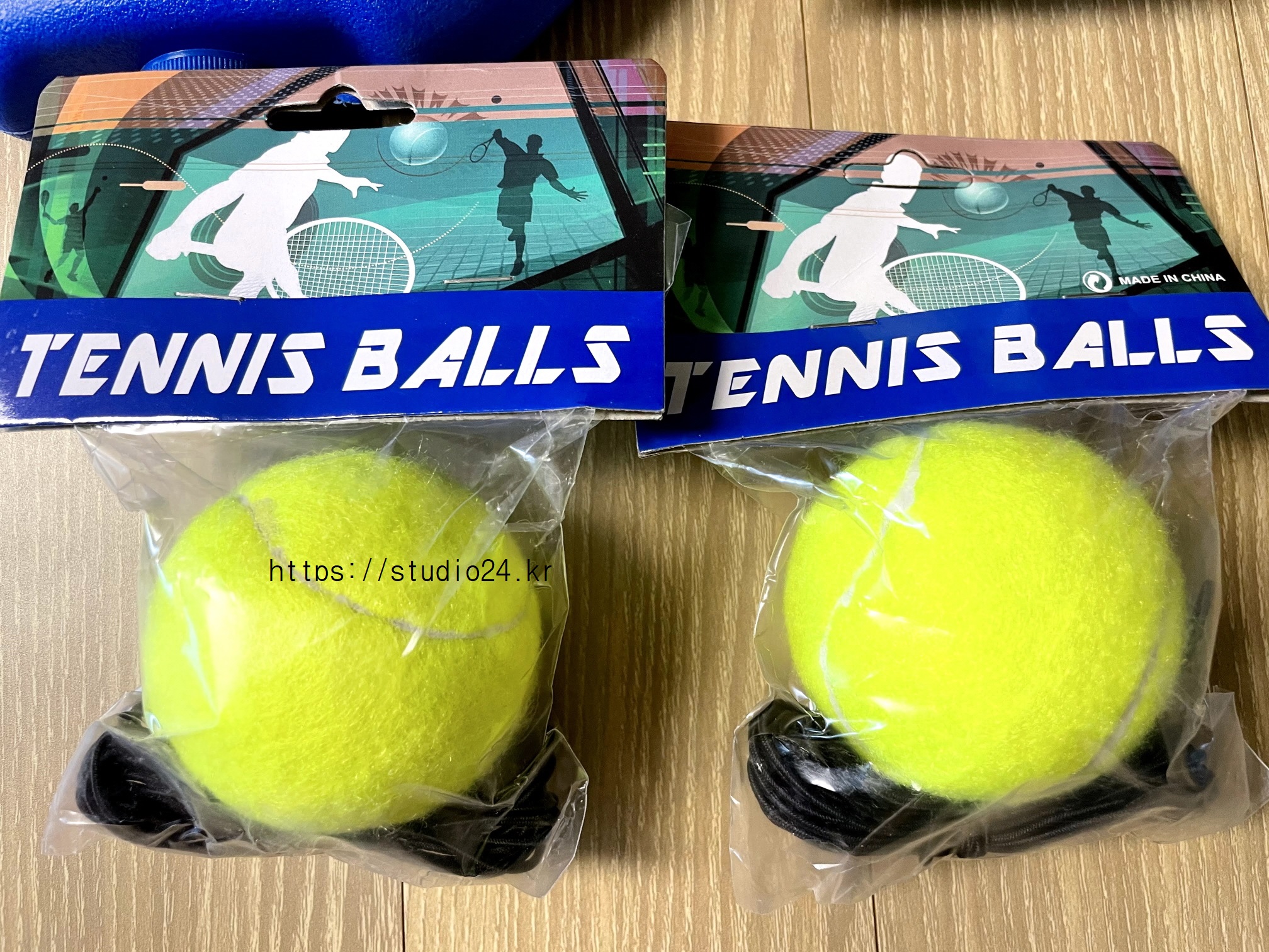 테니스 라켓과 신발은 준비되어 있으니 이제 테니스공과 연습기를 구입했습니다.