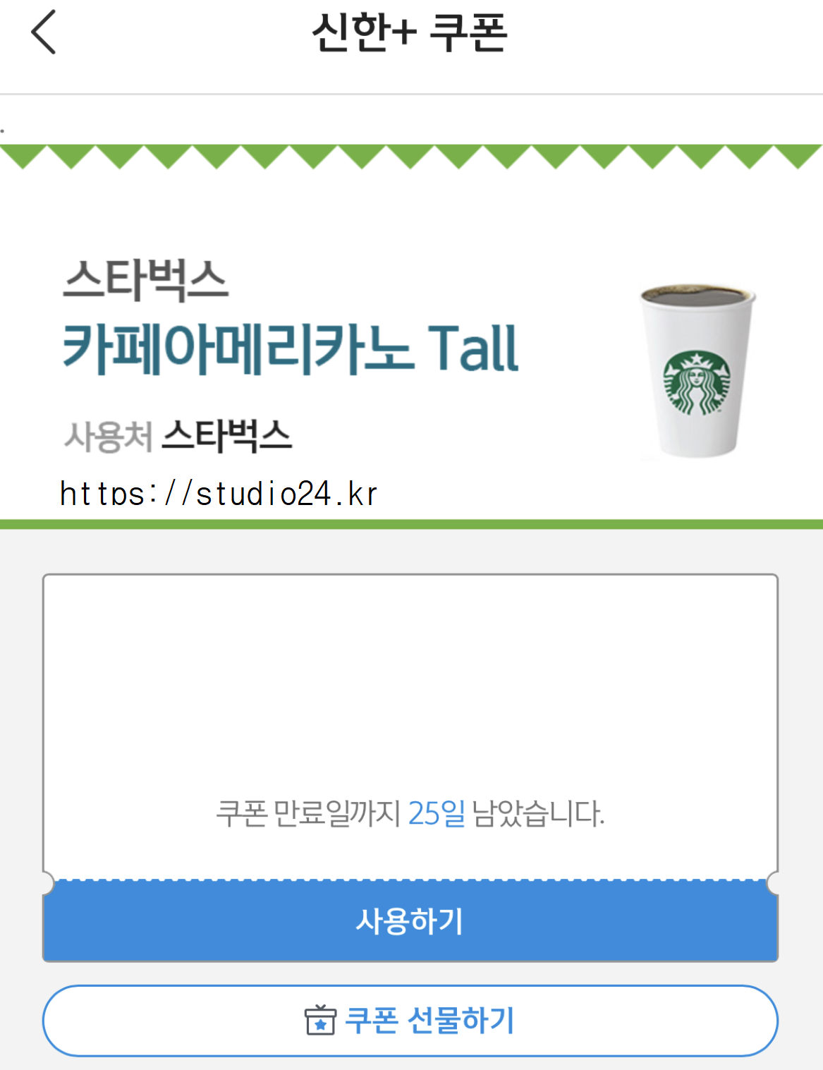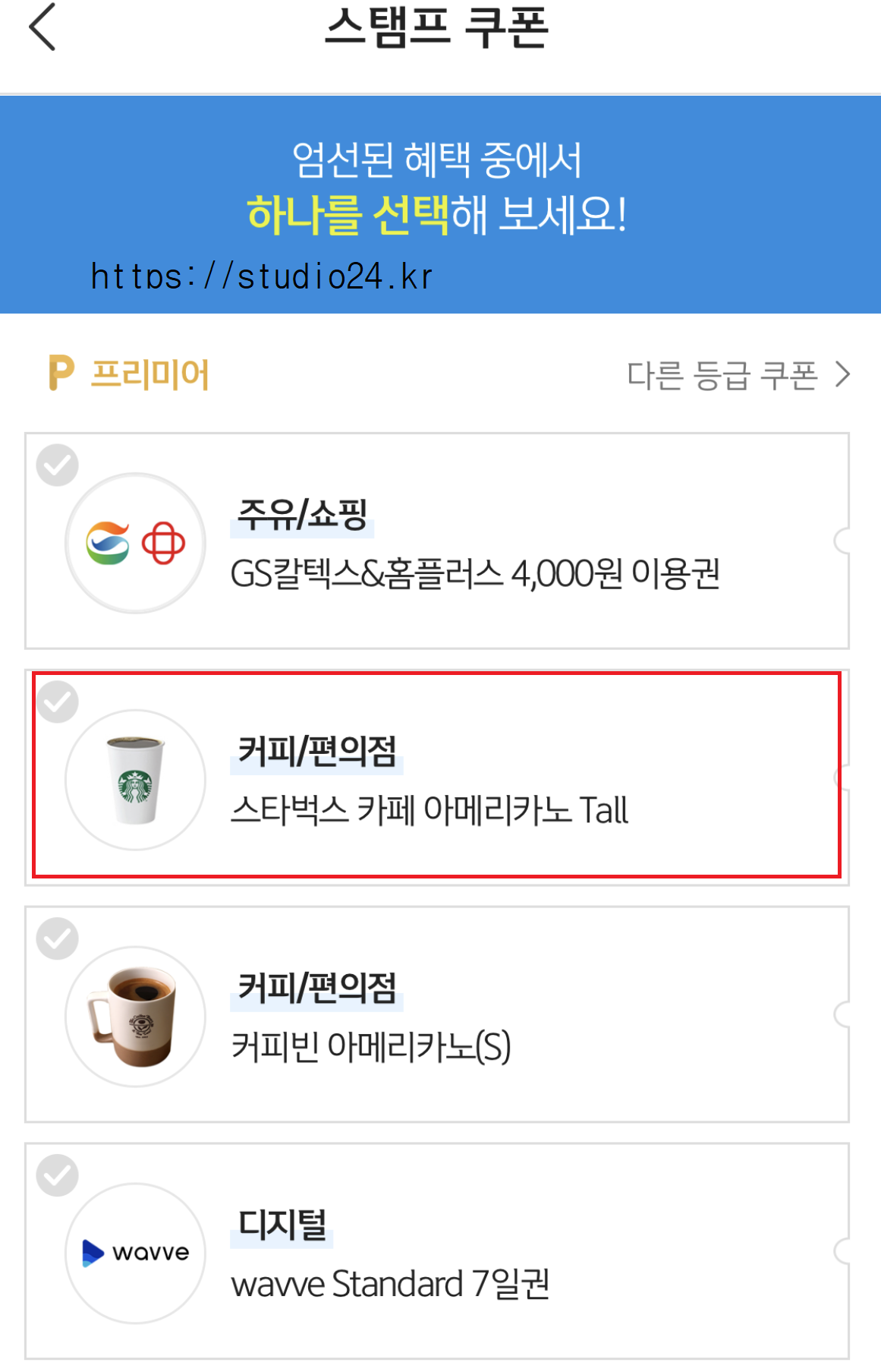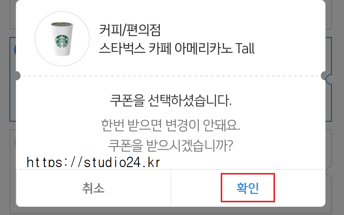 저는 스타벅스 카페 아메리카노 쿠폰을 선택했습니다.