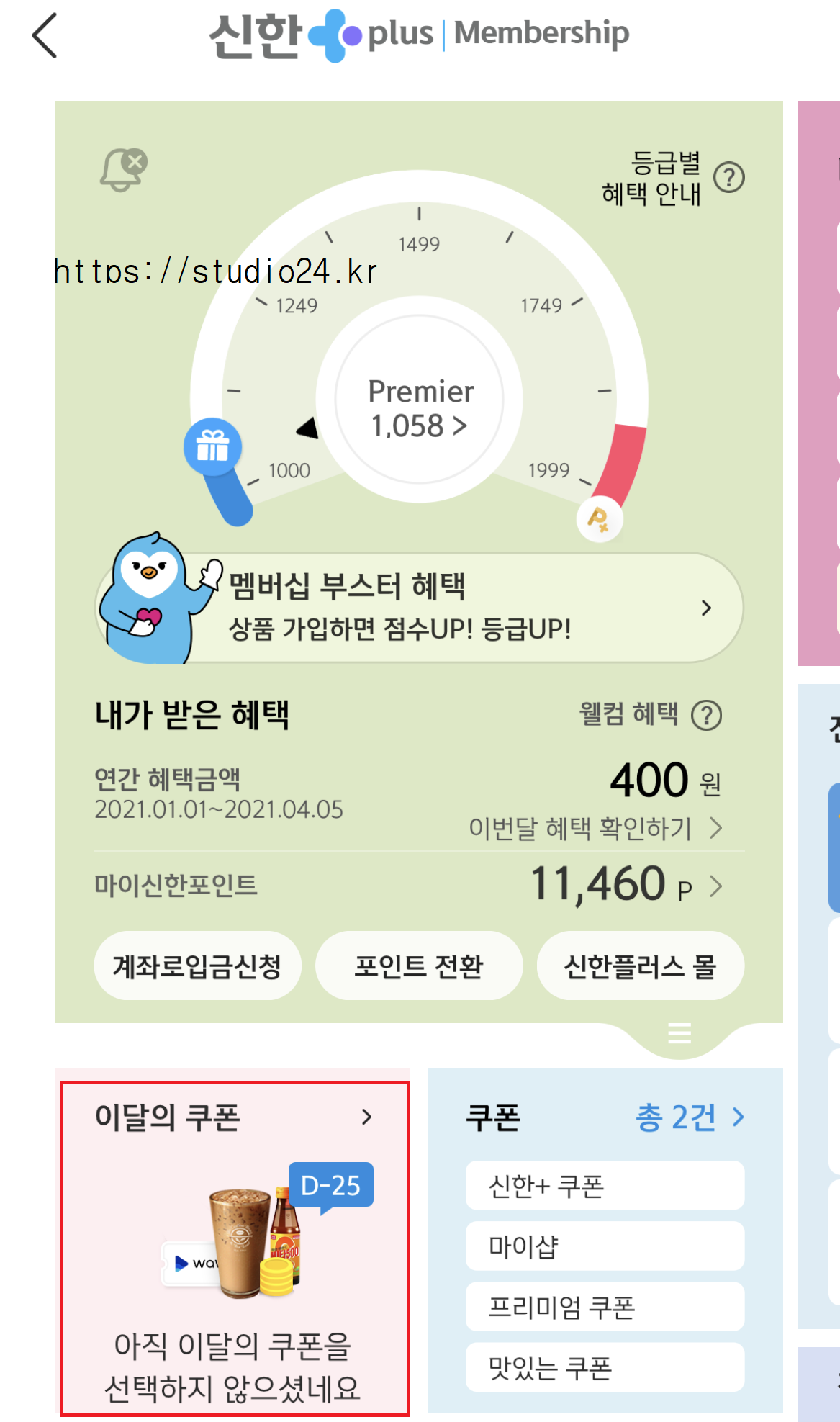신한플러스, 2021년 2분기 등급 쿠폰, 공짜 스벅커피 받는 방법