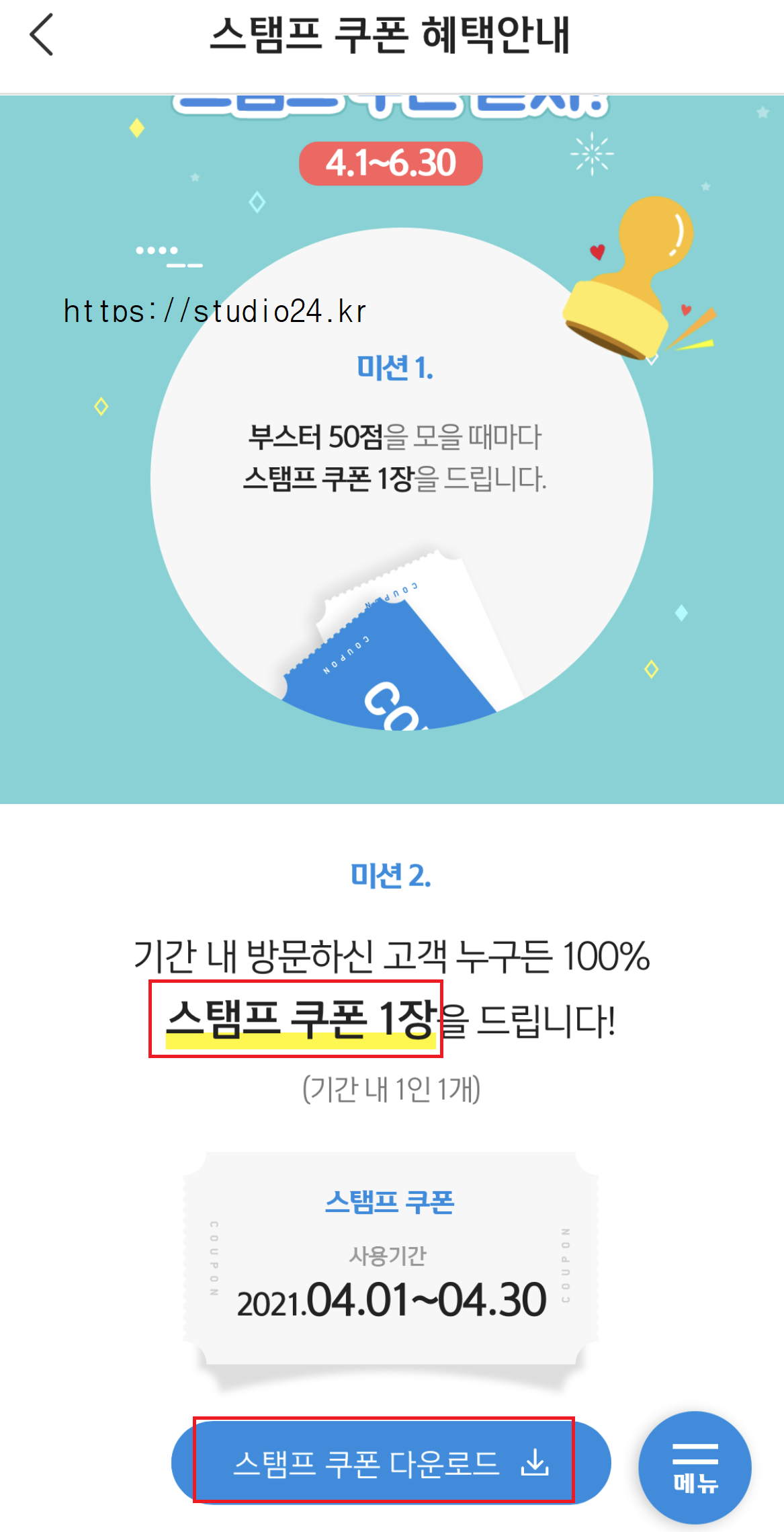 스탬프 1개는 이달의 쿠폰으로 교환이 가능합니다.