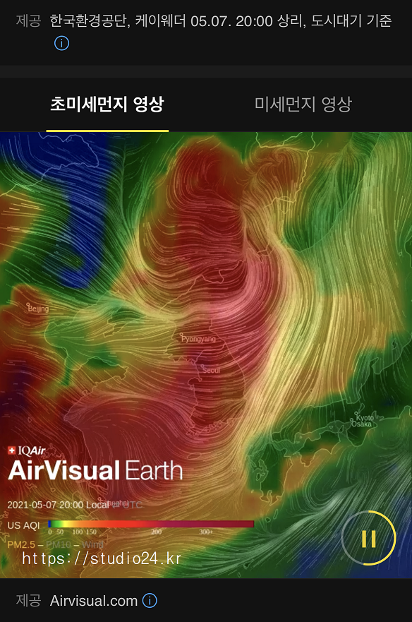 초미세먼지 영상을 보면 그냥 다 붉은색