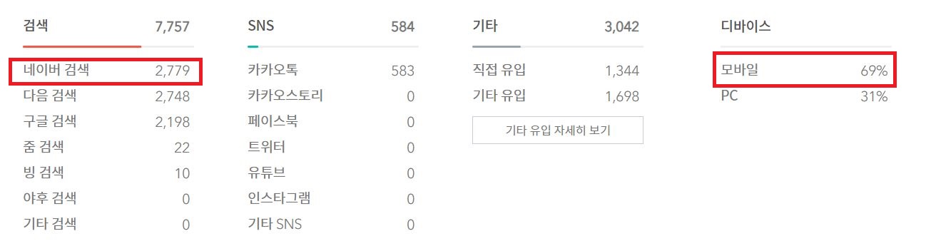 검색 유입은 네이버 검색이 가장 높았습니다.