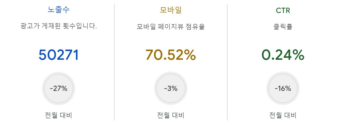 노출수 50,271건, 모바일 페이지뷰 점유율 70.52%, CTR 0.24%입니다.