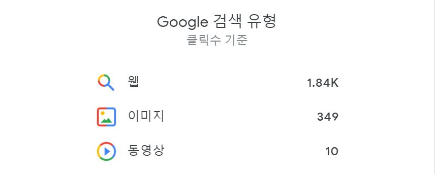 검색 유형의 경우 웹 검색이 높게 확인되고 있고, 이미지와 동영상이 꾸준히 증가되고 있습니다.