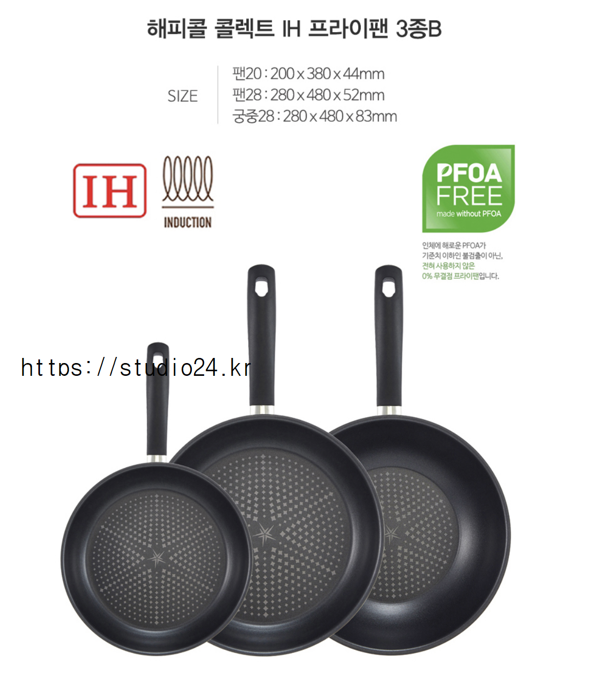 생활용품, VOGO 해피콜 콜렉트 인덕션 프라이팬 3종 세트
