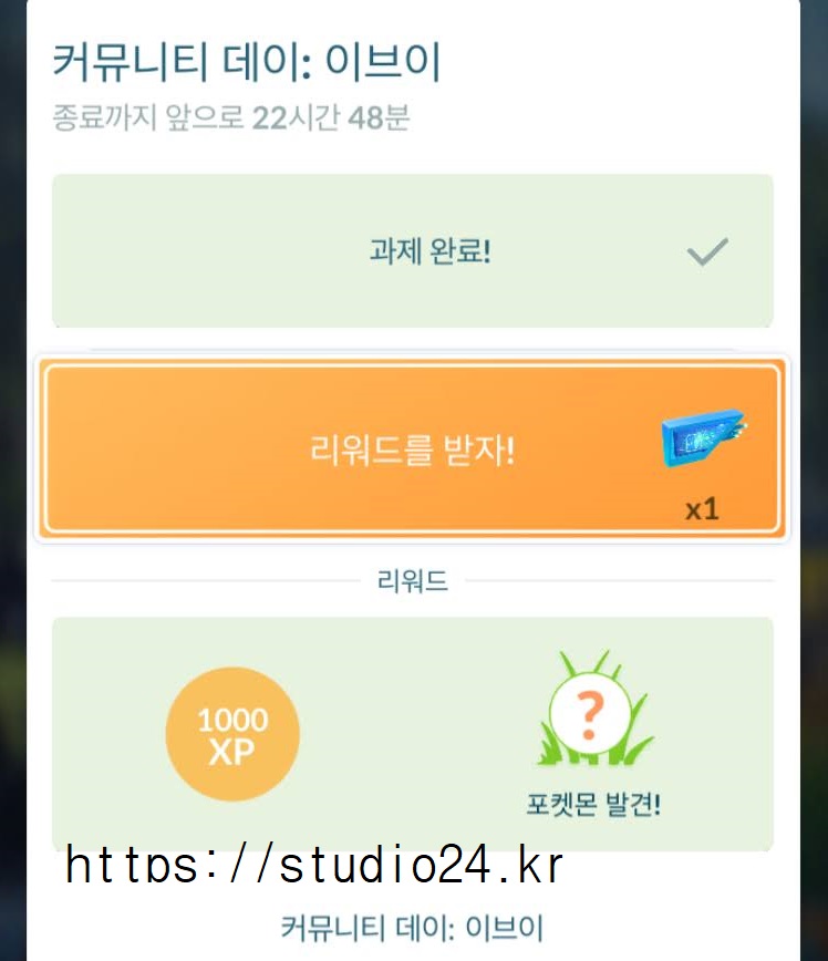 내용 : 색이 다른 이브이, 스냅샷 서프라이즈 5회, 알 부화 거리 1/4, 향로 및 루어모듈 3시간