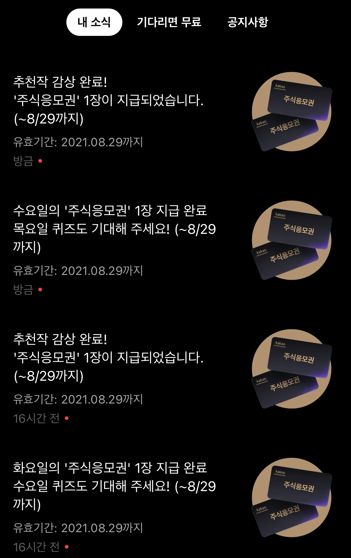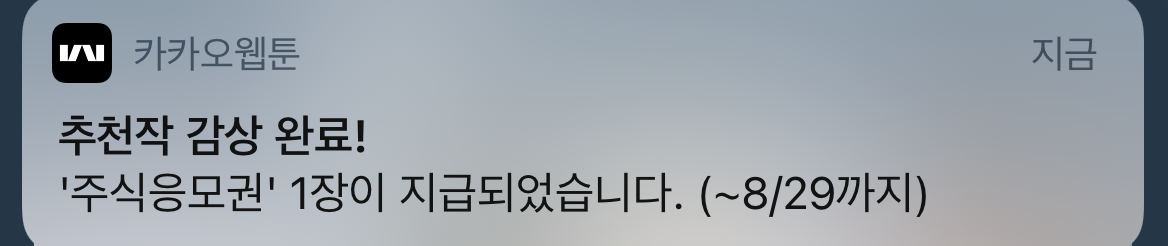 추천작을 감상하면 주식 응모권 1장이 추가 지급됩니다.