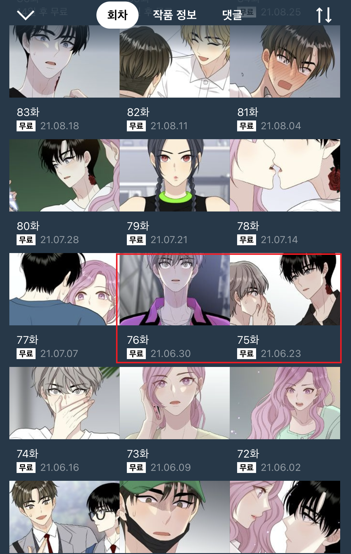 무료로 되어 있는 회차를 클릭하세요.