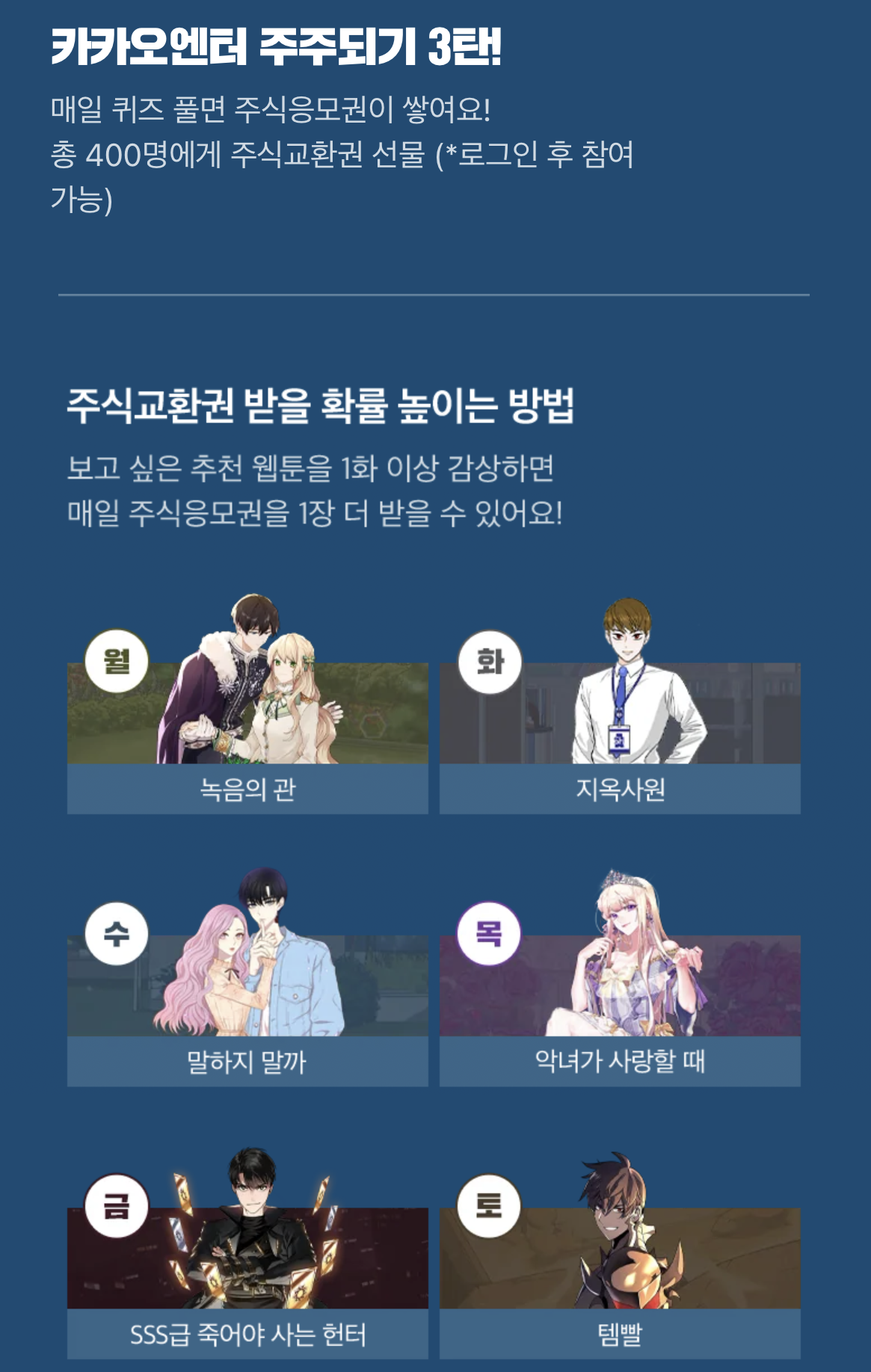 카카오웹툰 주식 이벤트 매일 퀴즈를 풀자! 8/25 수요일 정답