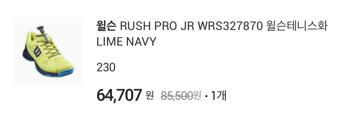윌슨 2021 러쉬 프로 JR 230mm을 주문했으나 재고 부족으로 기다리다 받았습니다.