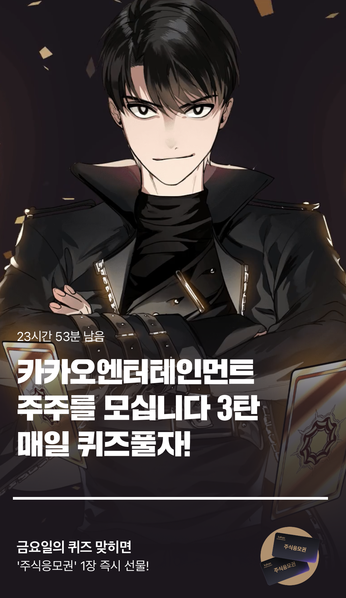 카카오 웹툰 주식 퀴즈 이벤트 8/27 금요일 정답