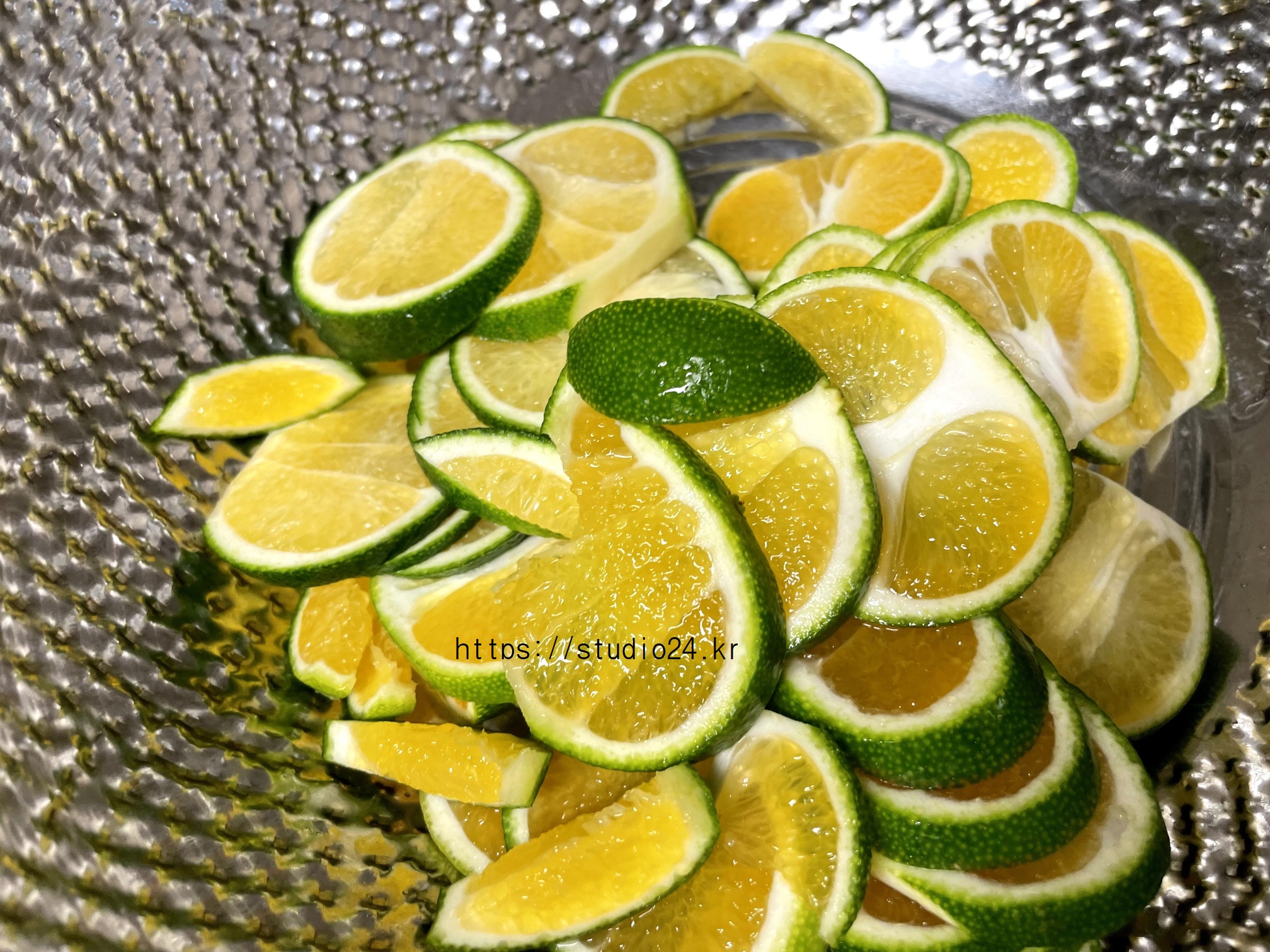잘 씻고, 자르고, 배합비는 설탕 1:1, 잘 세척된 병에 옮겨 담고 2~3일 숙성 후 냉장 보관