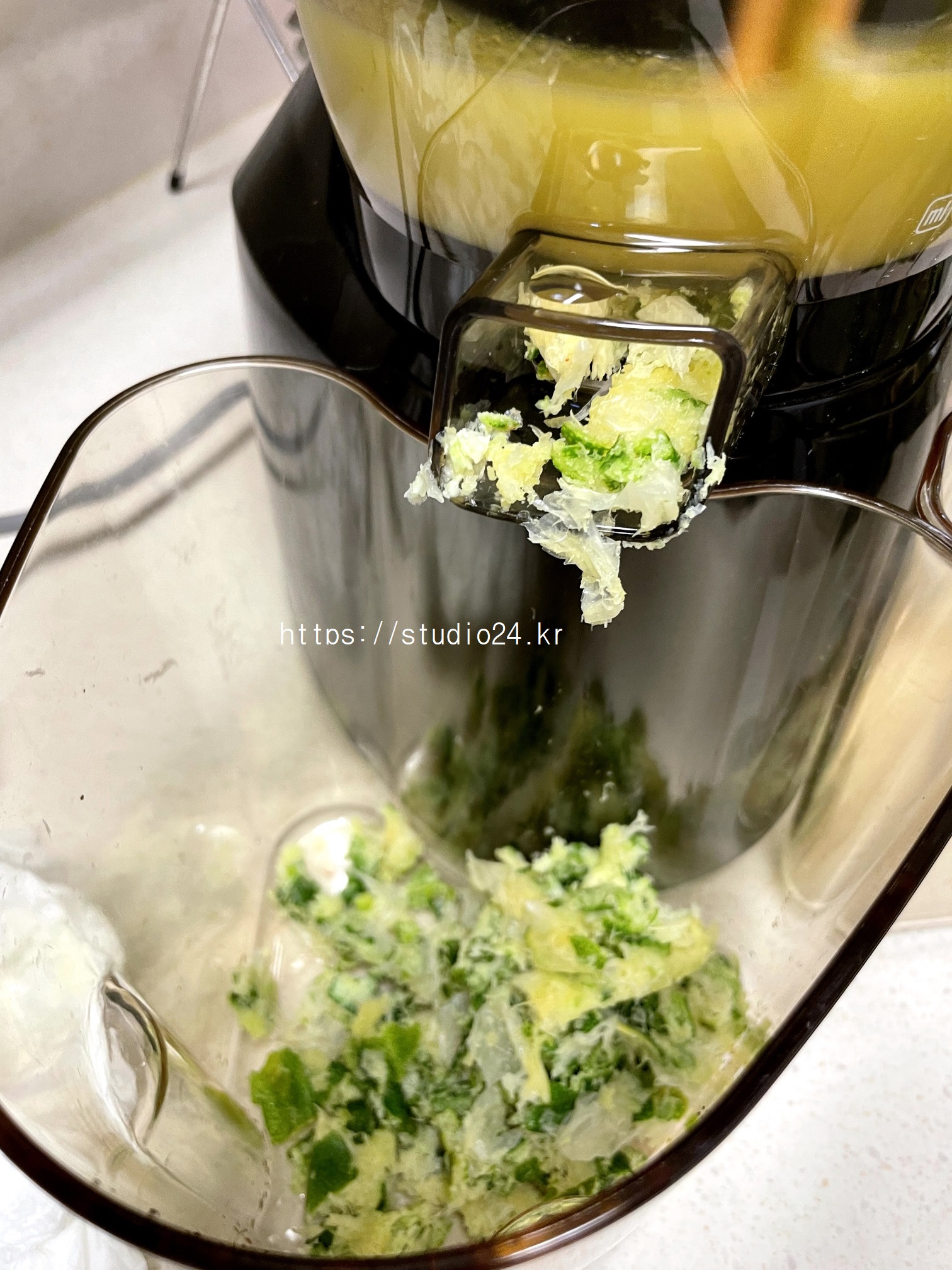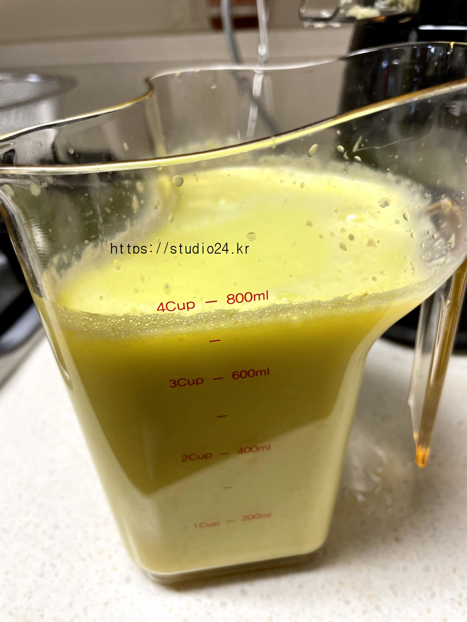 꿀 대신 아까 휴롬으로 짠 원액을 넣어 줍니다.