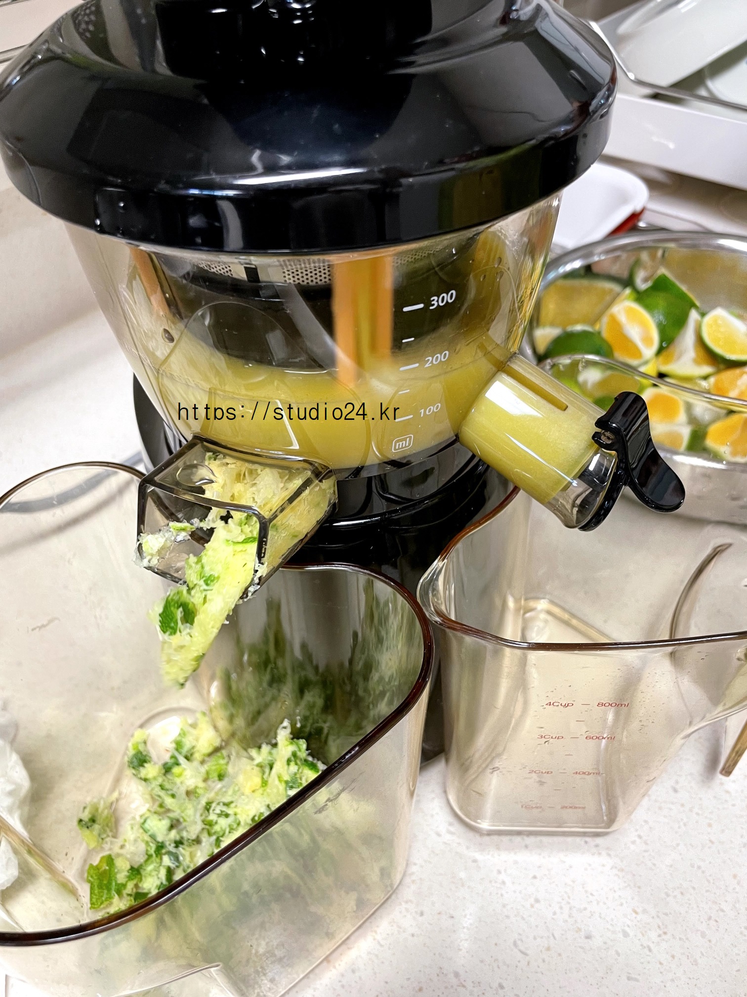 이제 휴롬으로 껍질이 이상한 애들만 따로 과즙을 짜줍니다.
