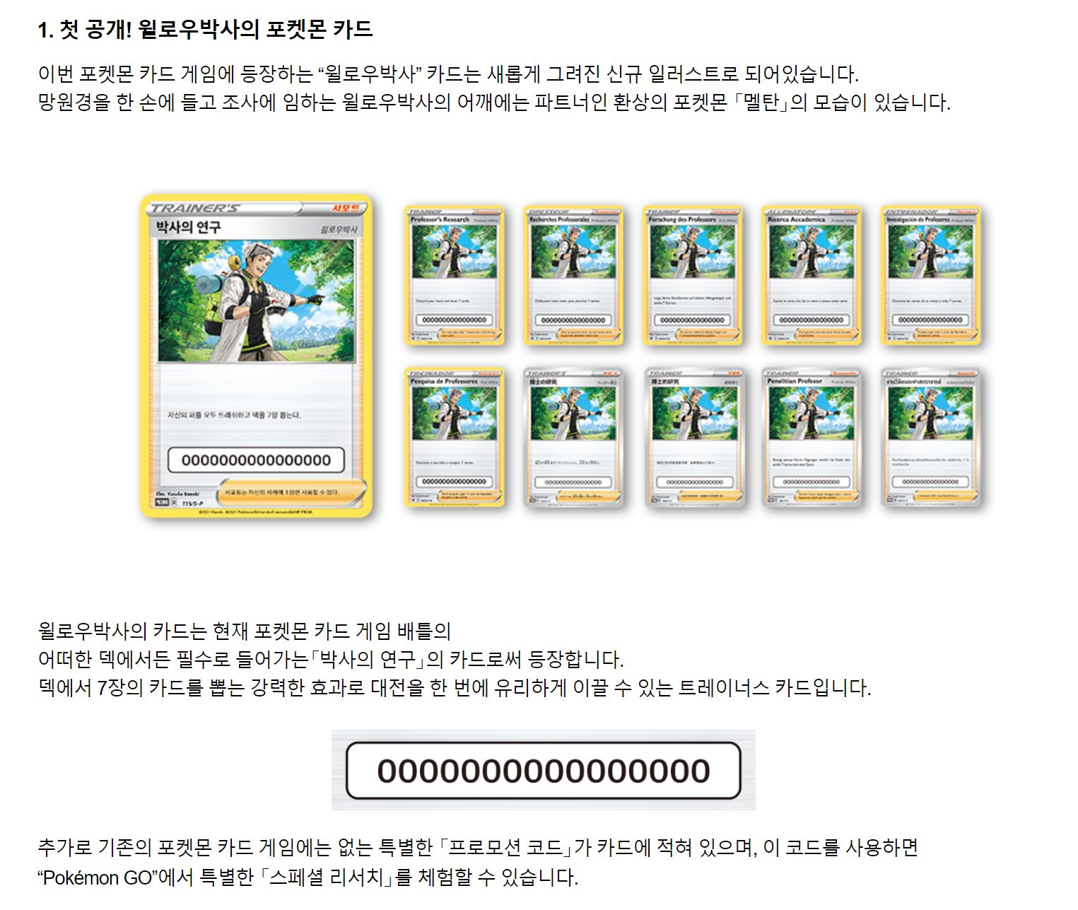 윌로우 박사의 카드는 포켓몬 카드 게임 배틀의 필수로 들어가는 카드로 등장합니다.