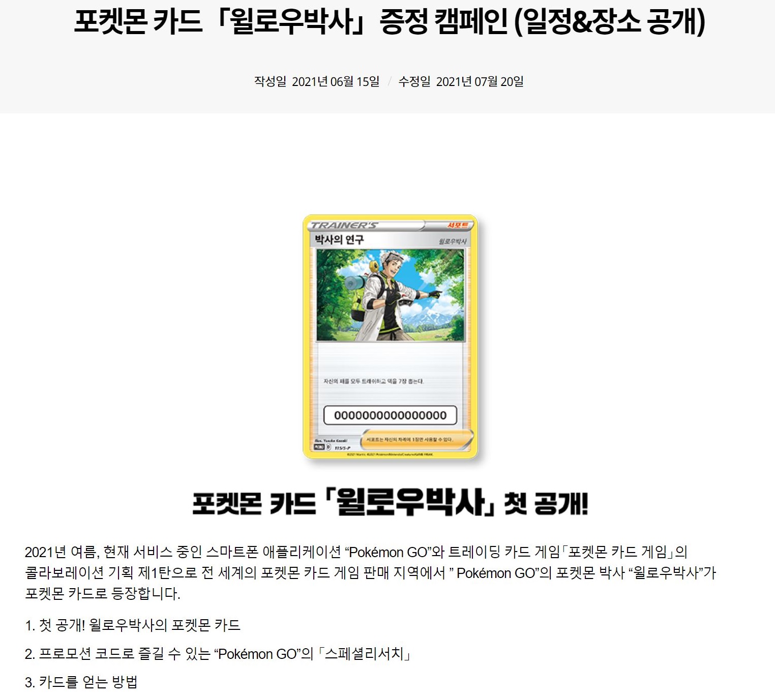 포켓몬고 박사의 연구 스페셜 리서치