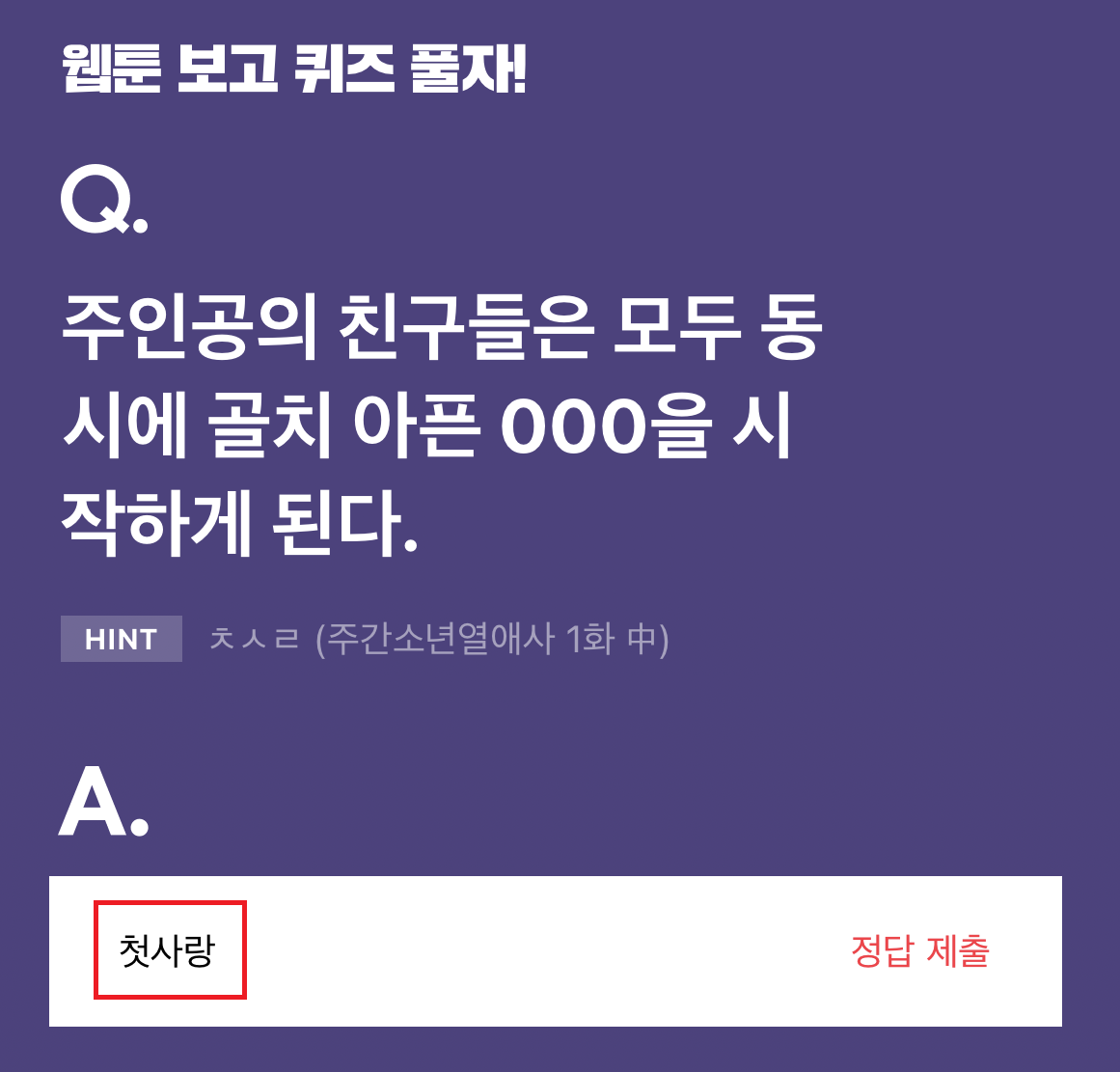 퀴즈 정답이 아~~!! 첫사랑~