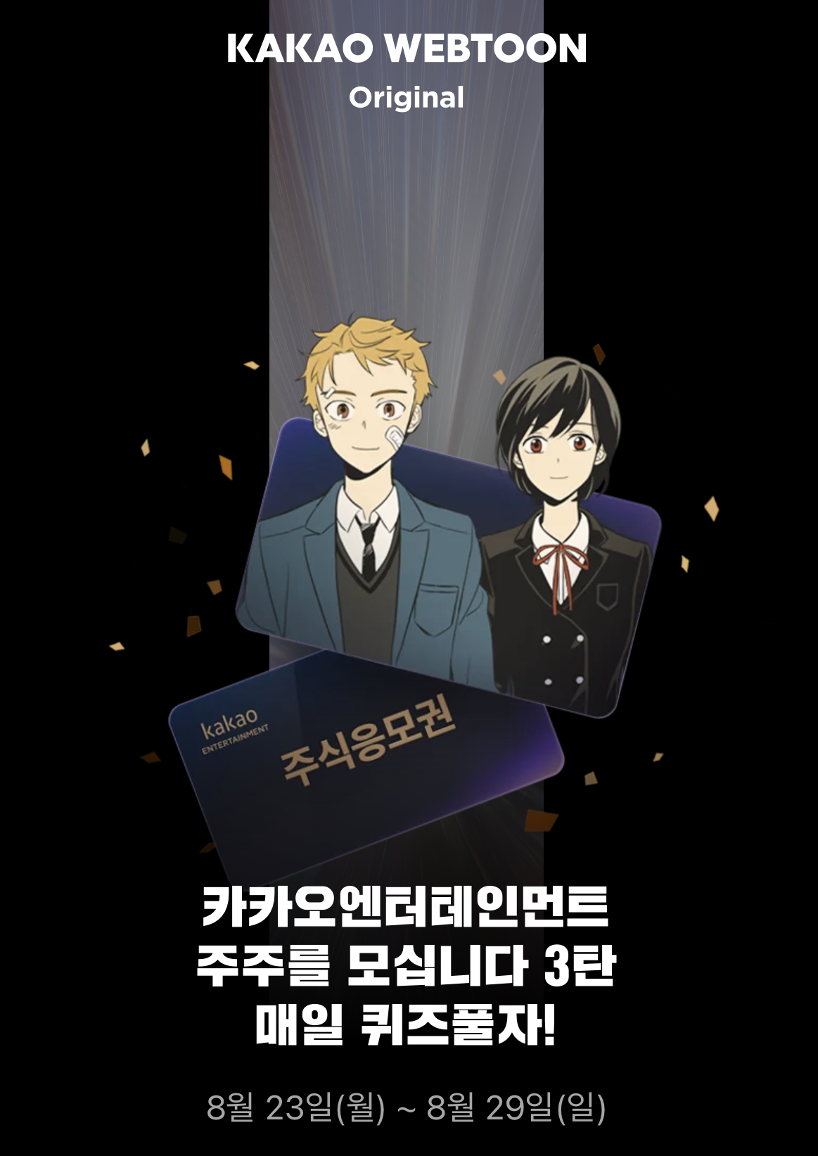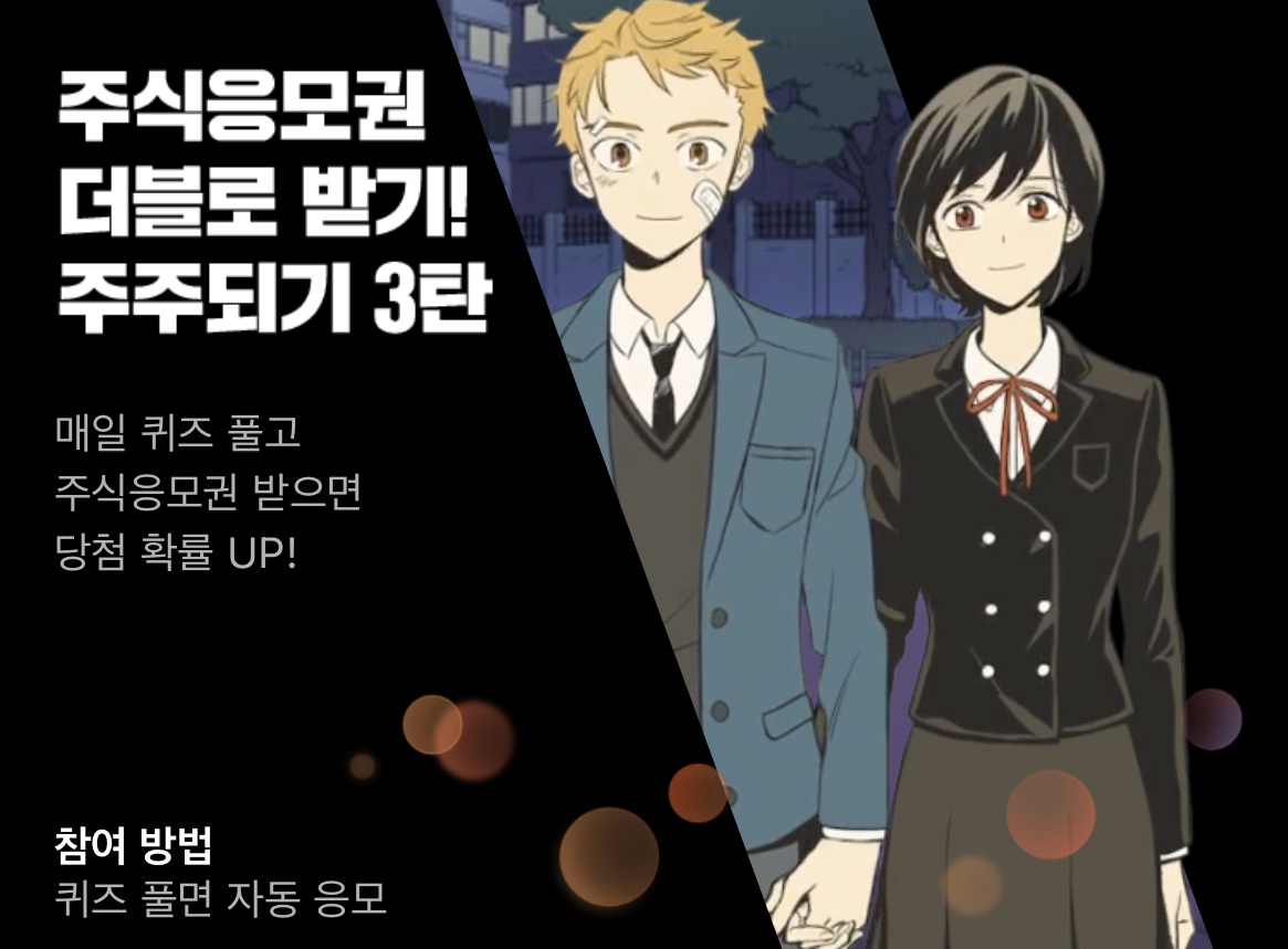 카카오 웹툰 퀴즈풀기 이벤트 8/29 일요일 정답, 웹툰 보고 주식받자!