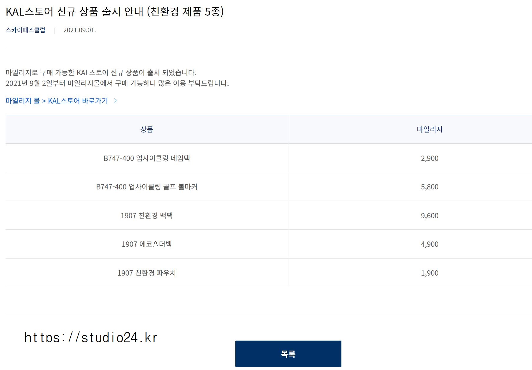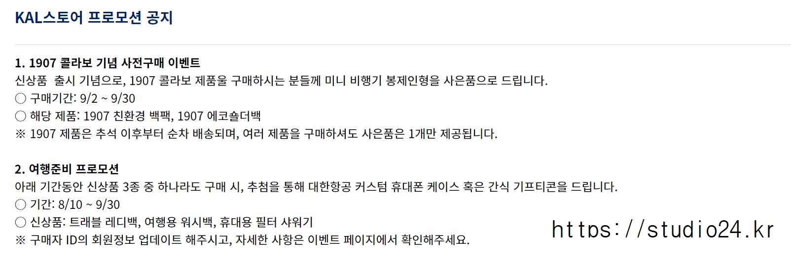 KAL 스토어 프로모션 공지가 나오면서 상품이 등장!