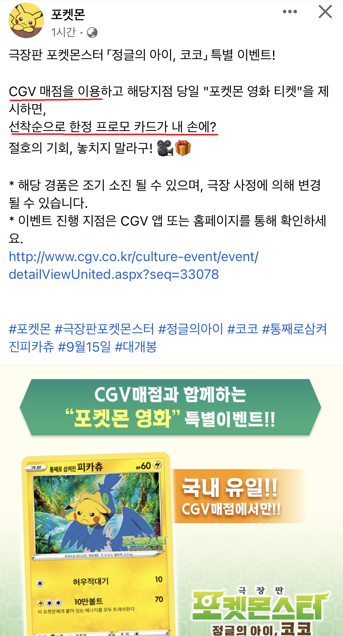 4. CGV 매점 이용 시 증정 : 통째로 삼켜진 피카츄 카드