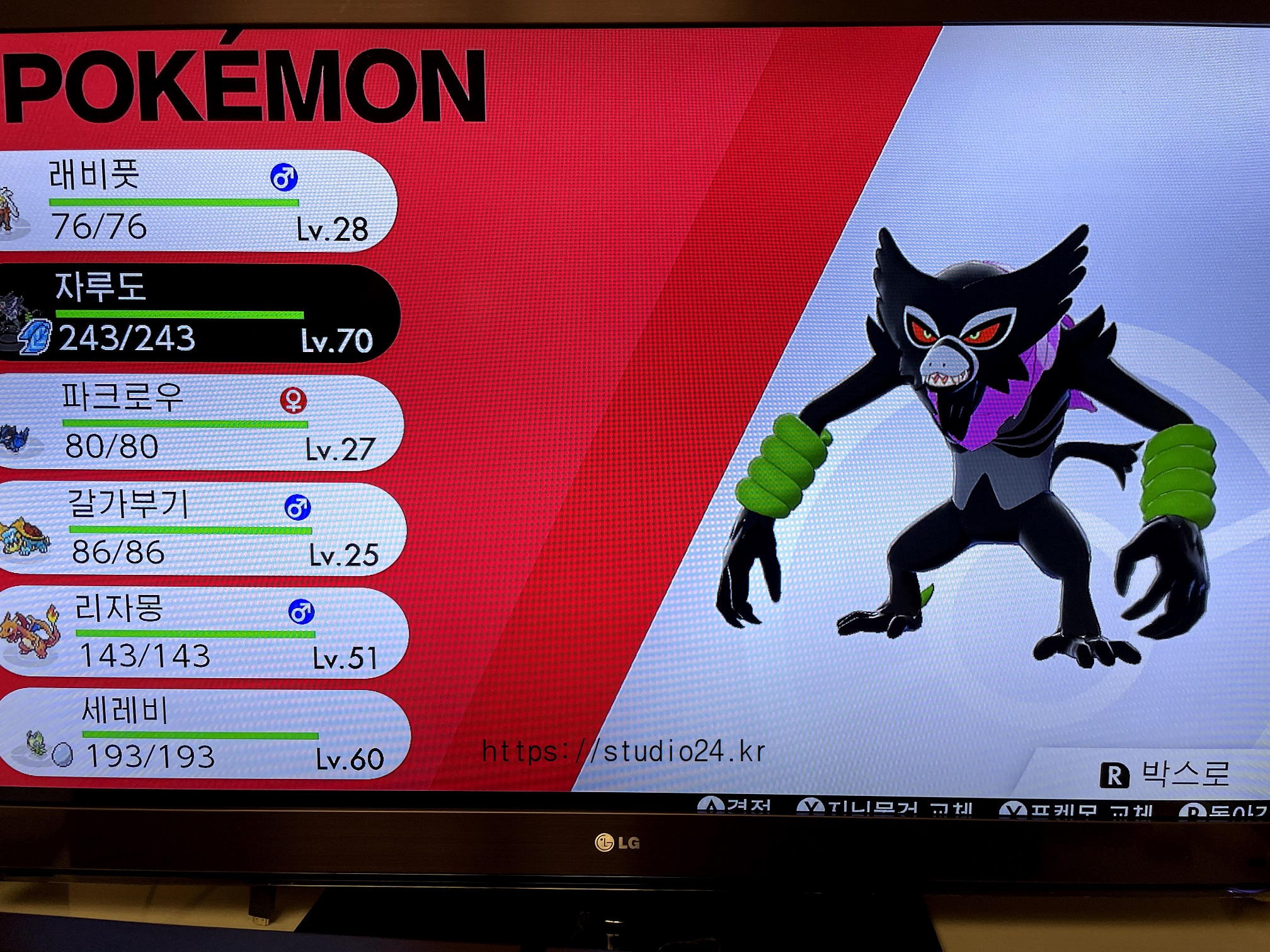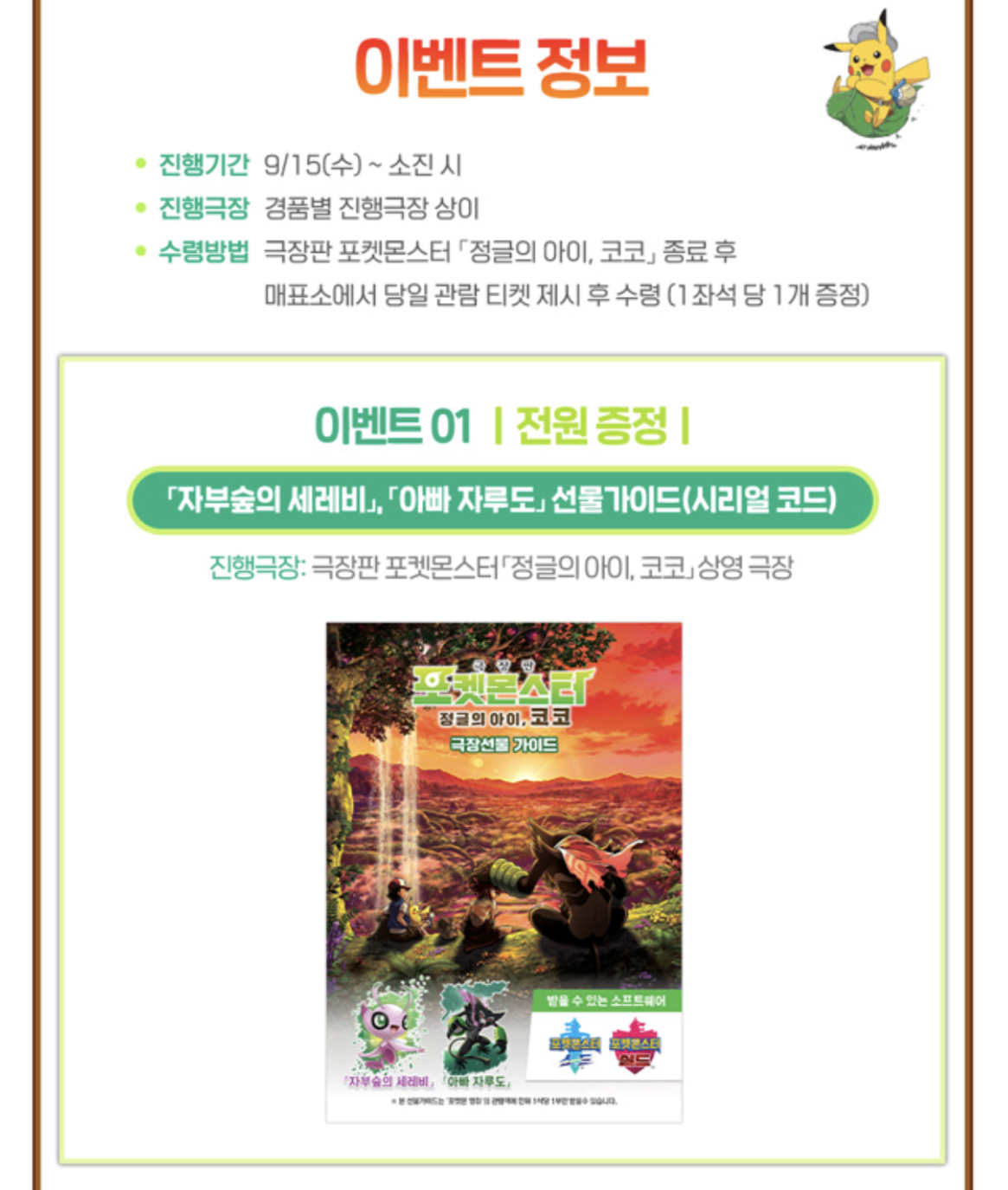 1. 전원 증정 : 자부숲의 세레비, 아빠 자루도 (스위치 소드 실드)
