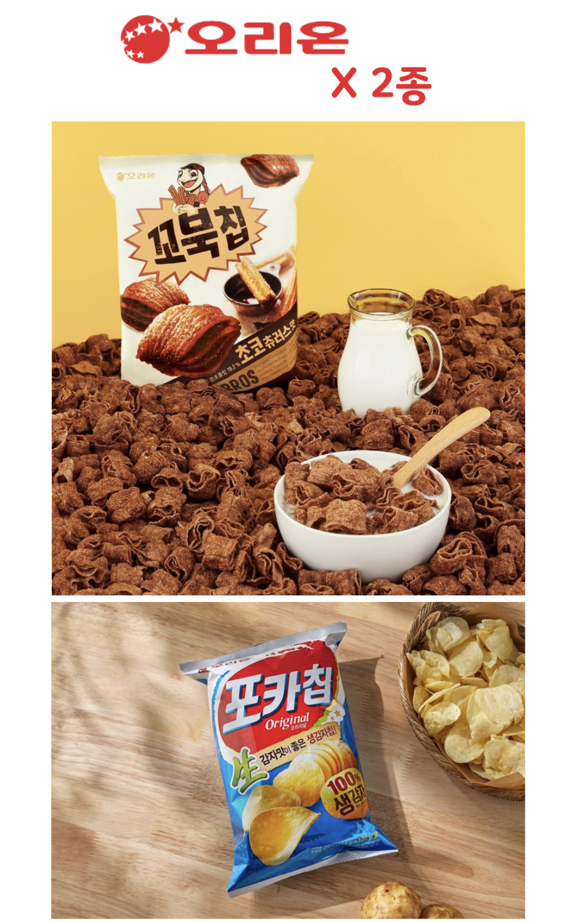 꼬북 칩 초코 추로스 맛, 포카칩, 스모키 베이컨칩, 야채타임 DIP