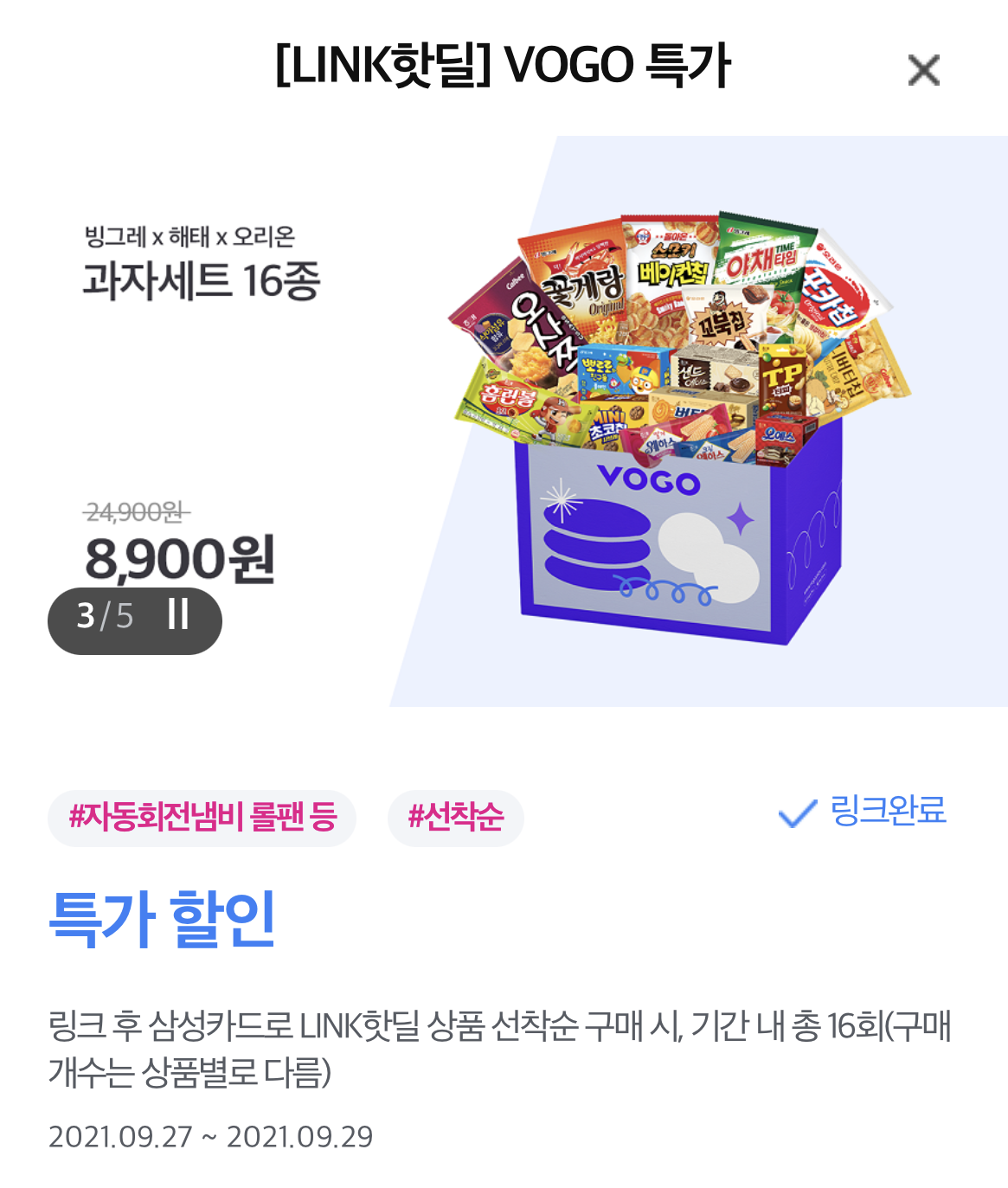 VOGO 삼성카드 LINK 9월 과자 세트 16종