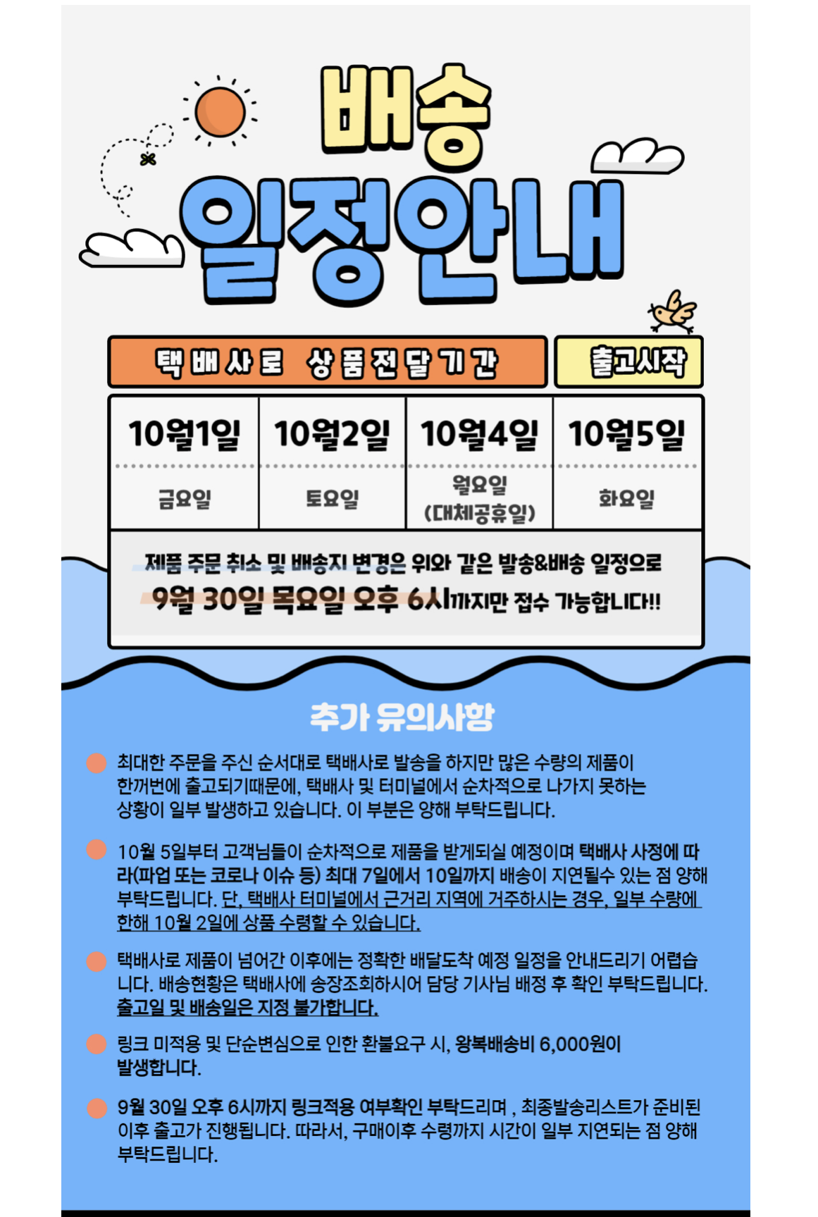 출고는 10월 1일 금요일부터