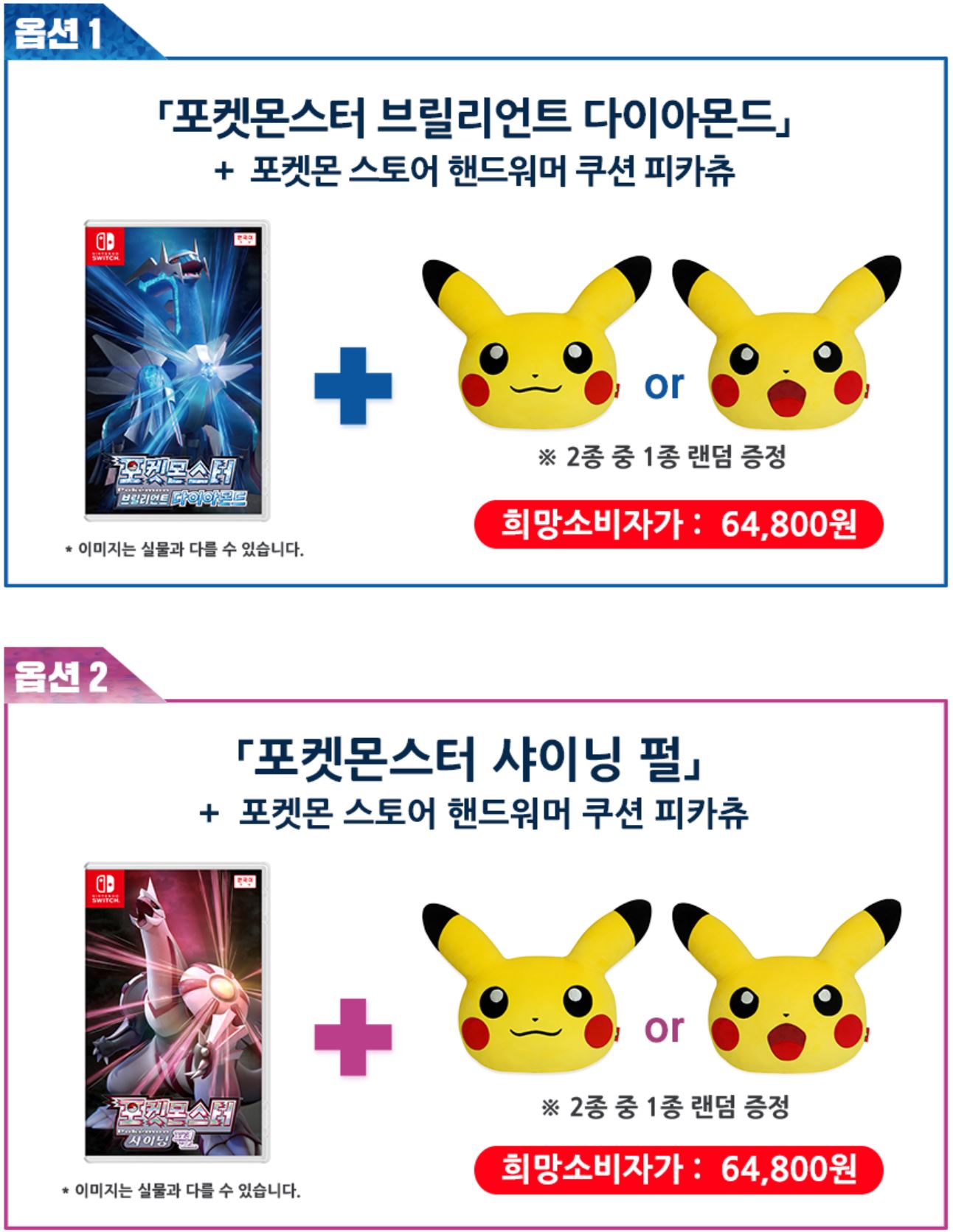 옵션 1. 포켓몬스터 브릴리언트 다이아몬드 + 포켓몬 스토어 핸드 워머 쿠션 피카츄!
