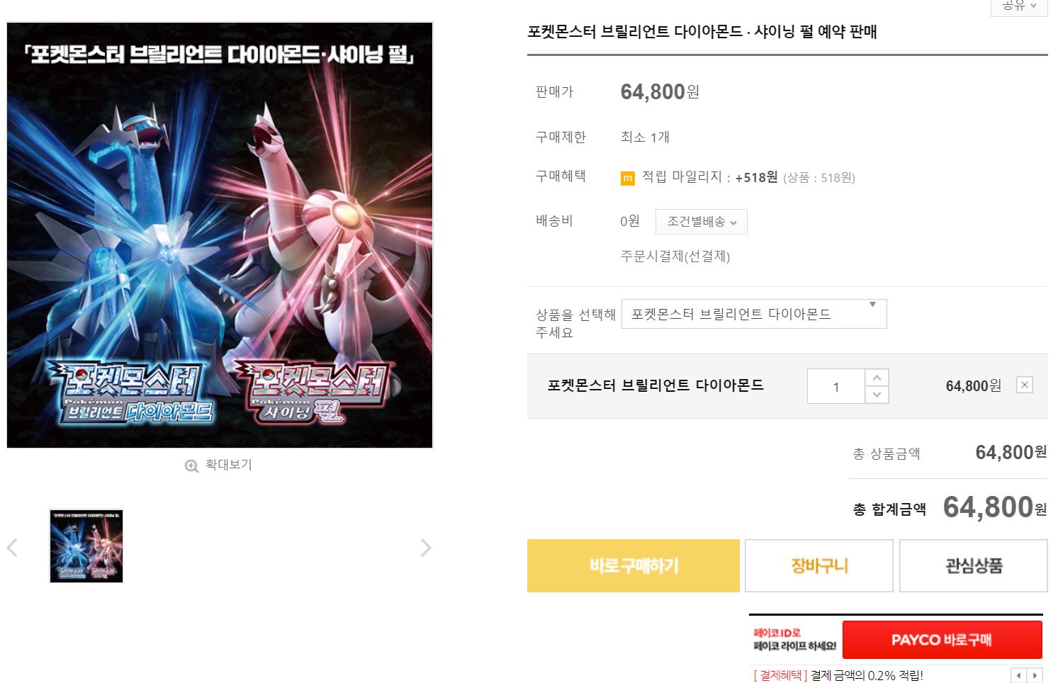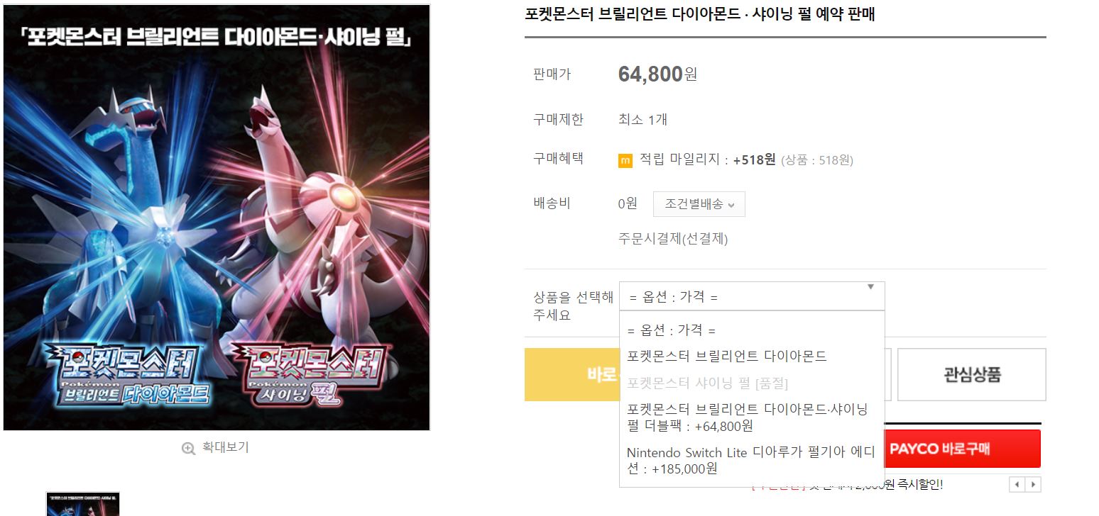 포켓몬스터 브릴리언트 다이아몬드 사전 예약 성공