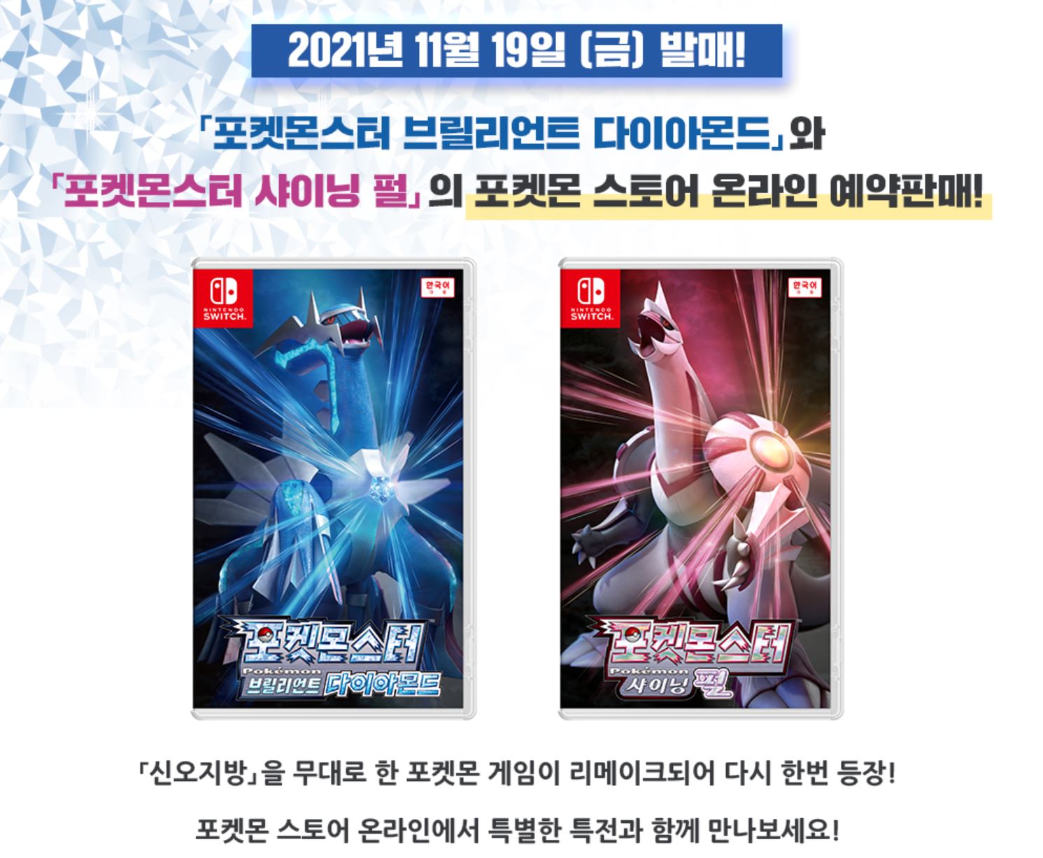 포켓몬스터 브릴리언트 다이아몬드 샤이닝 펄 예약 판매가 시작되었습니다.