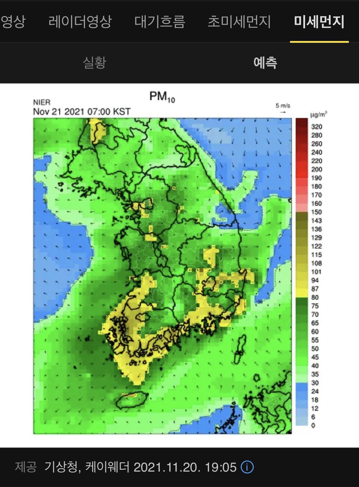 미세먼지, 2021년 11월 3주 최악의 미세먼지 발생