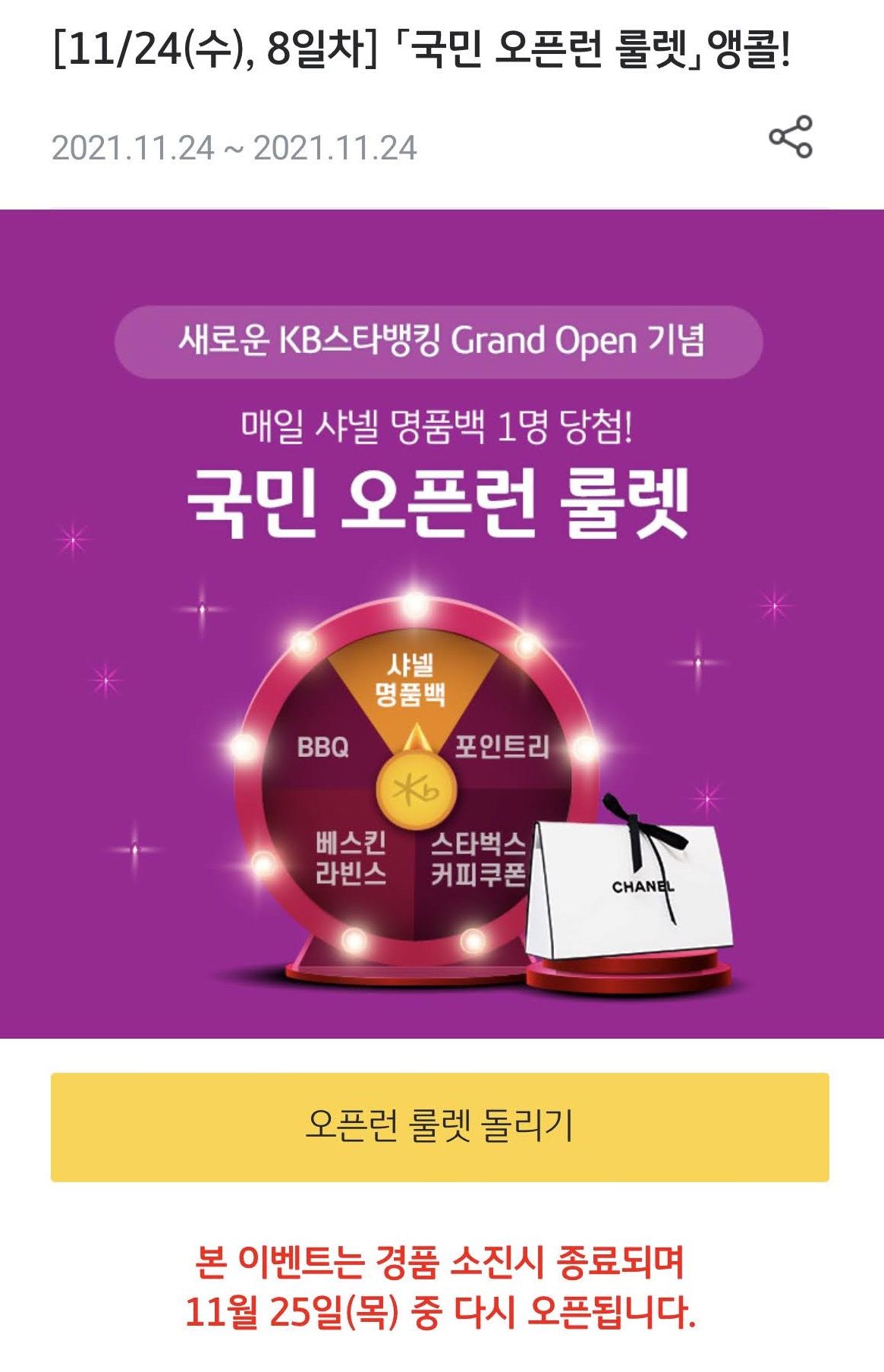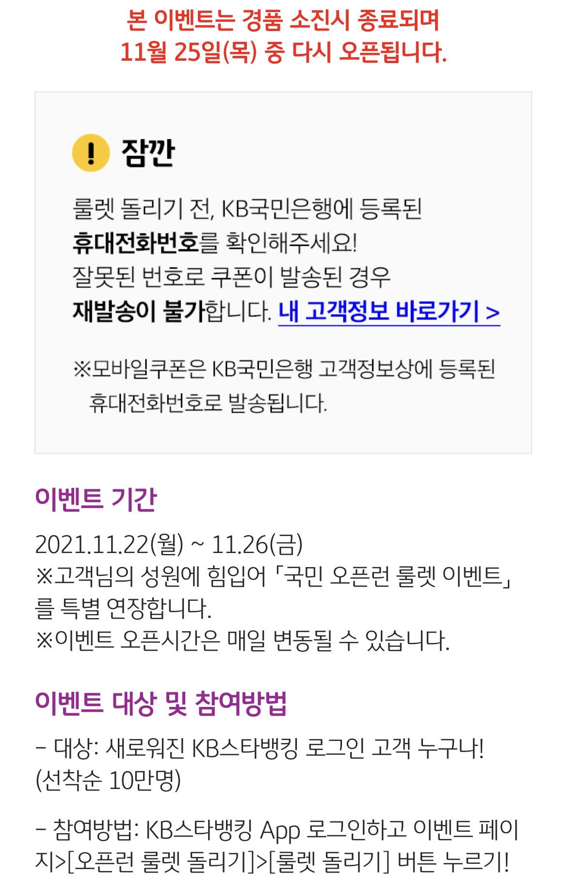 국민 오픈런 룰렛 이벤트가 진행되고 있습니다.
