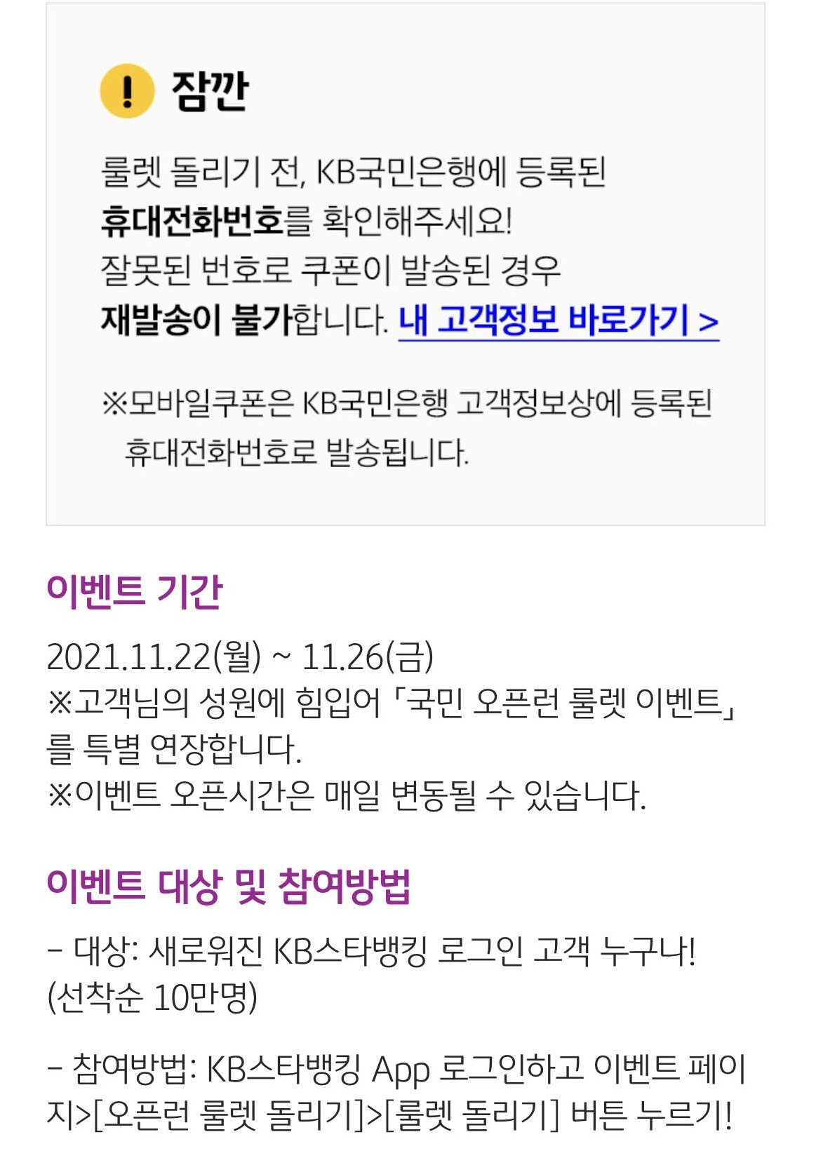 KB스타뱅킹, 국민 오픈런 룰렛 11/25(목) 9일차 조기 종료