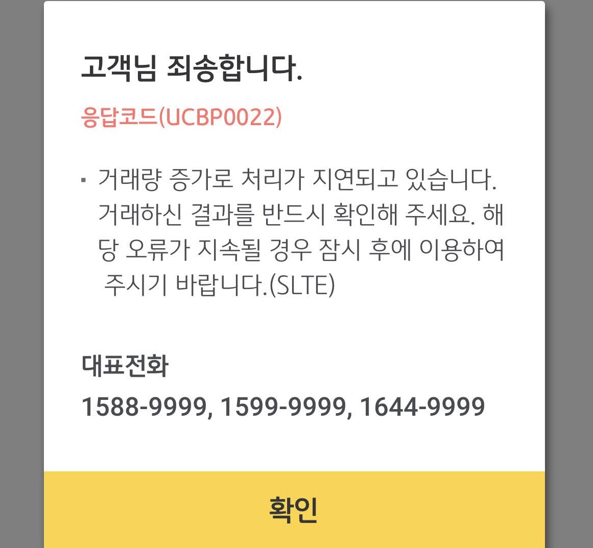 거래량 증가로 처리가 지연되고 있습니다.