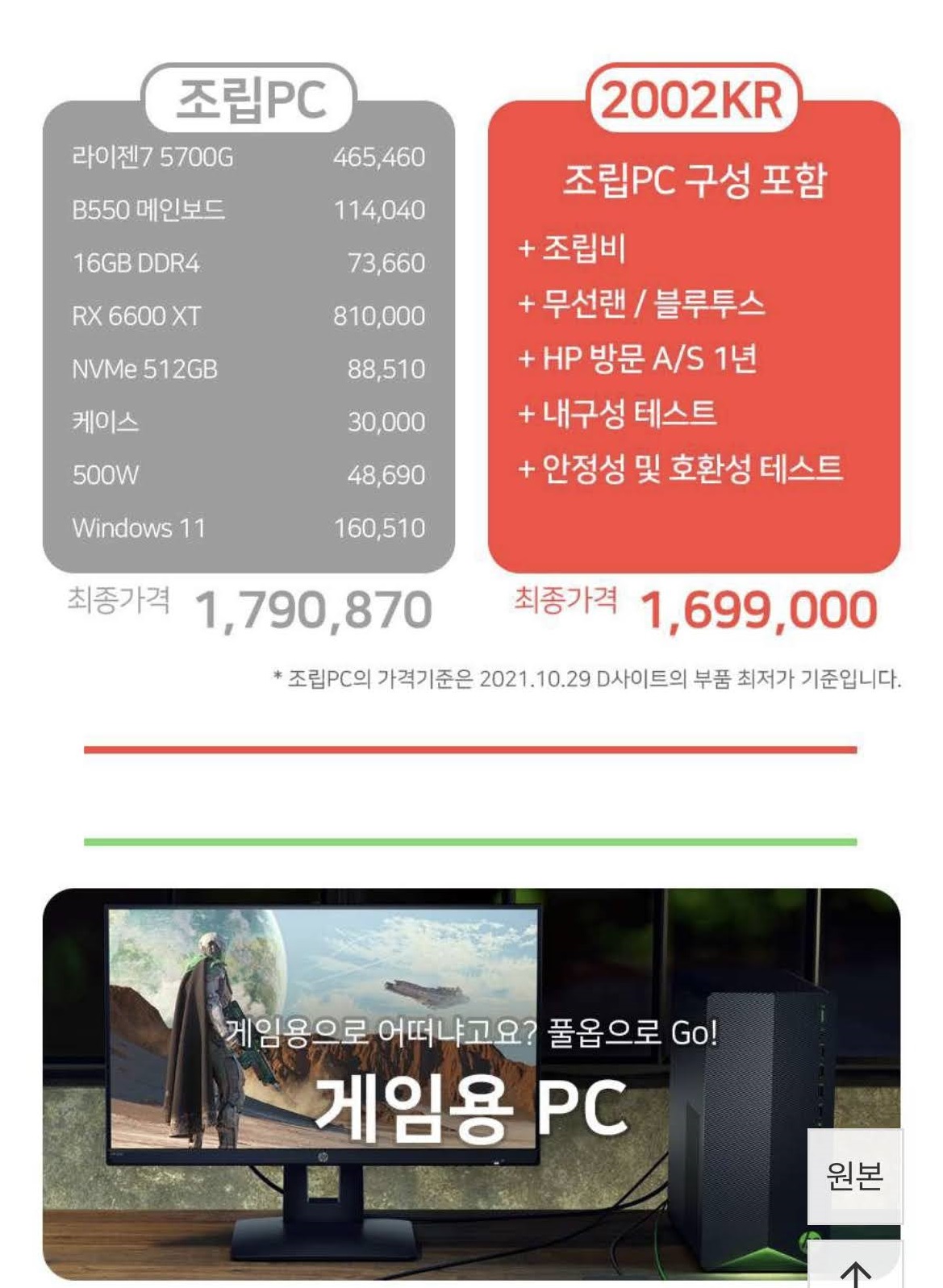 HP 파빌리온 게이밍PC 예약 구입, TG01-2002KR [R7-5700G/RX6600XT]