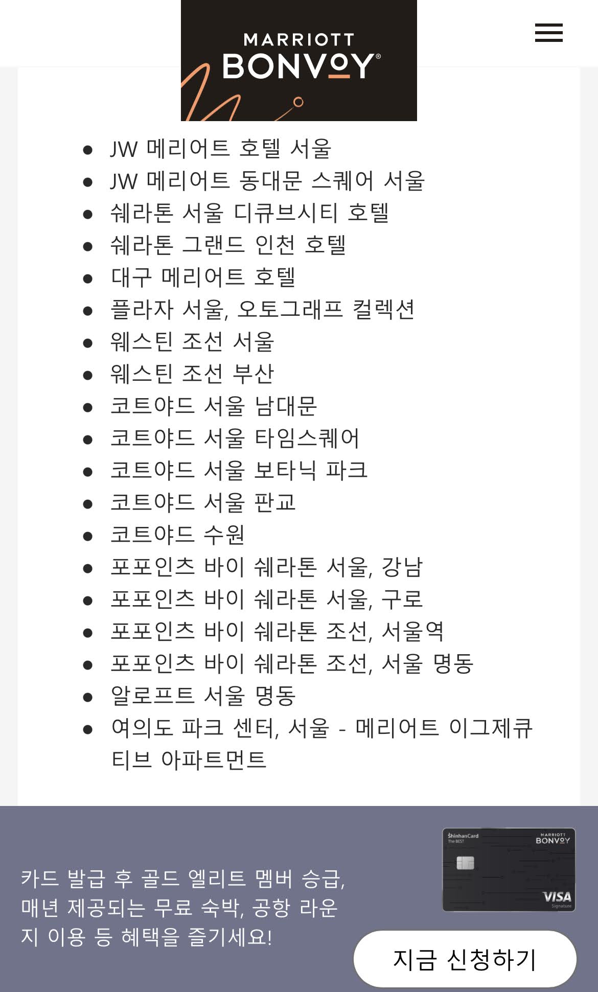얼마 전 발급받아 잘 사용하고 있던 메리어트 본보이 더베스트 신한카드