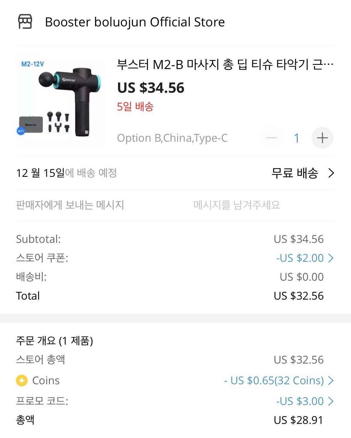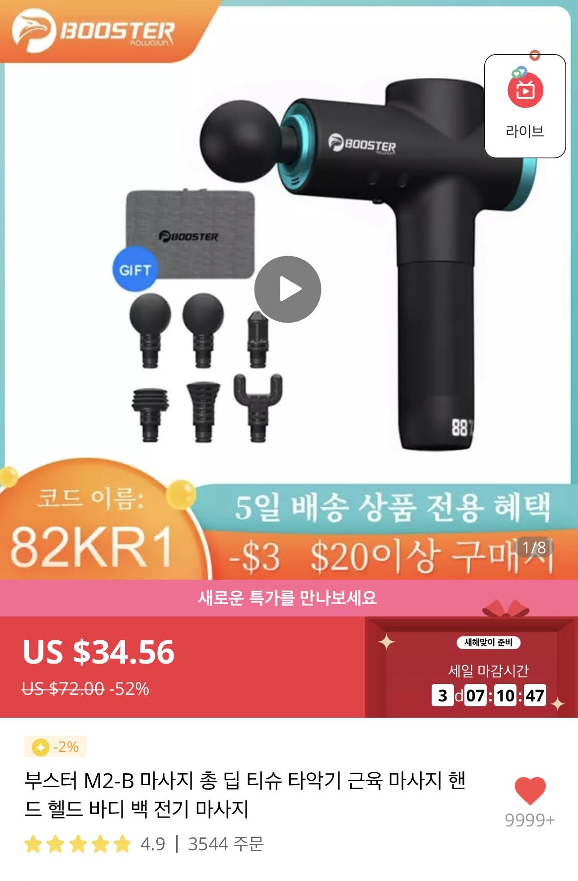 생활, 알리익스프레스 부스터 M2-B 마사지 건 구입 $28.91