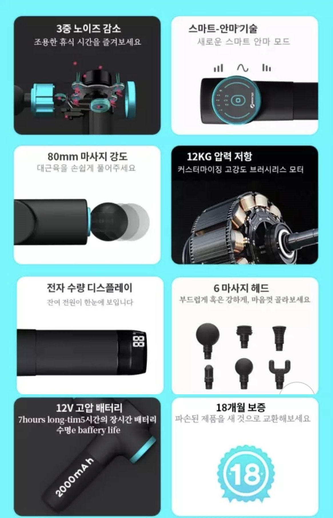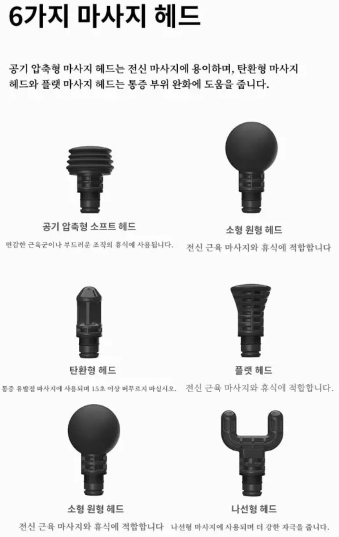 마사지 헤드는 총 6종류 제공