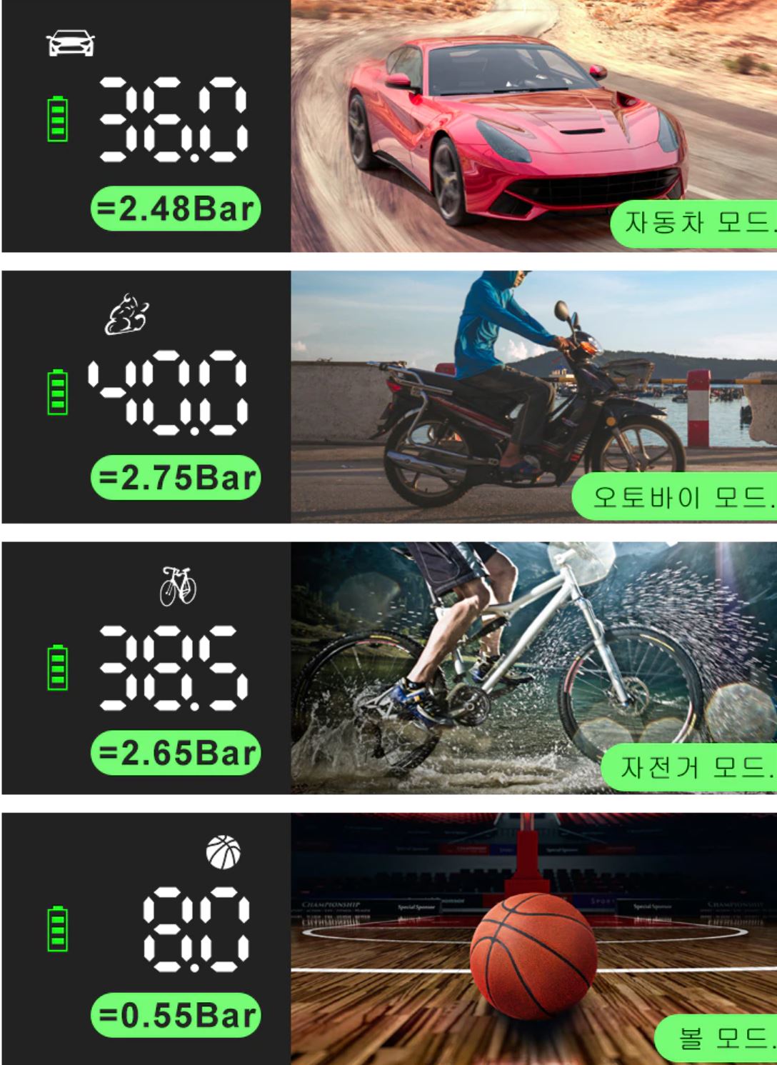 빠른 팽창, 정확한 타이어 압력 측정