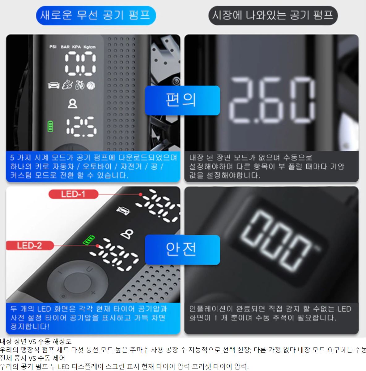 미니 공기 펌프는 자동차 타이어 펑크가 걱정되시는 분