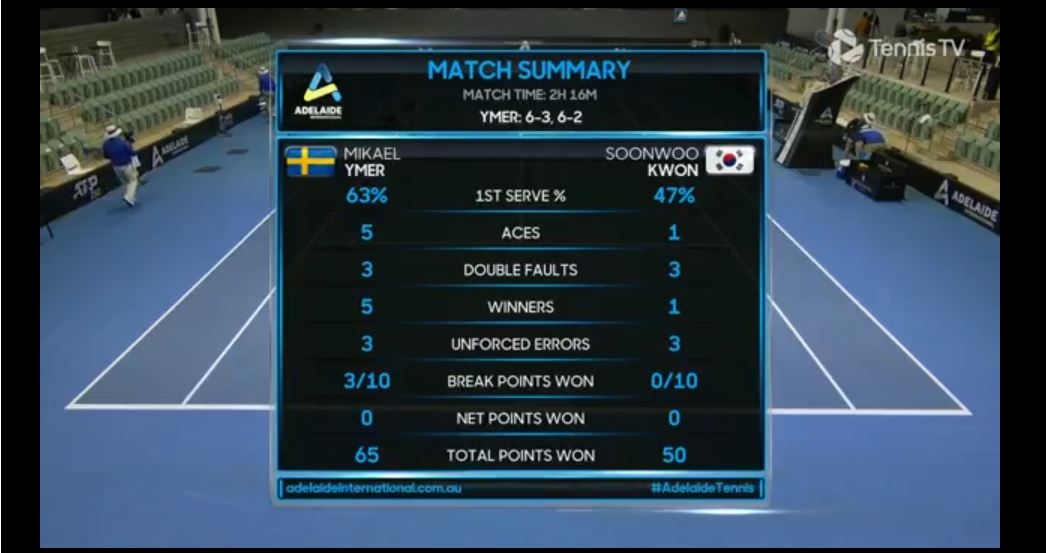 테니스, 호주 오픈 실시간 시청 방법, 권순우 호주 ATP250 16강