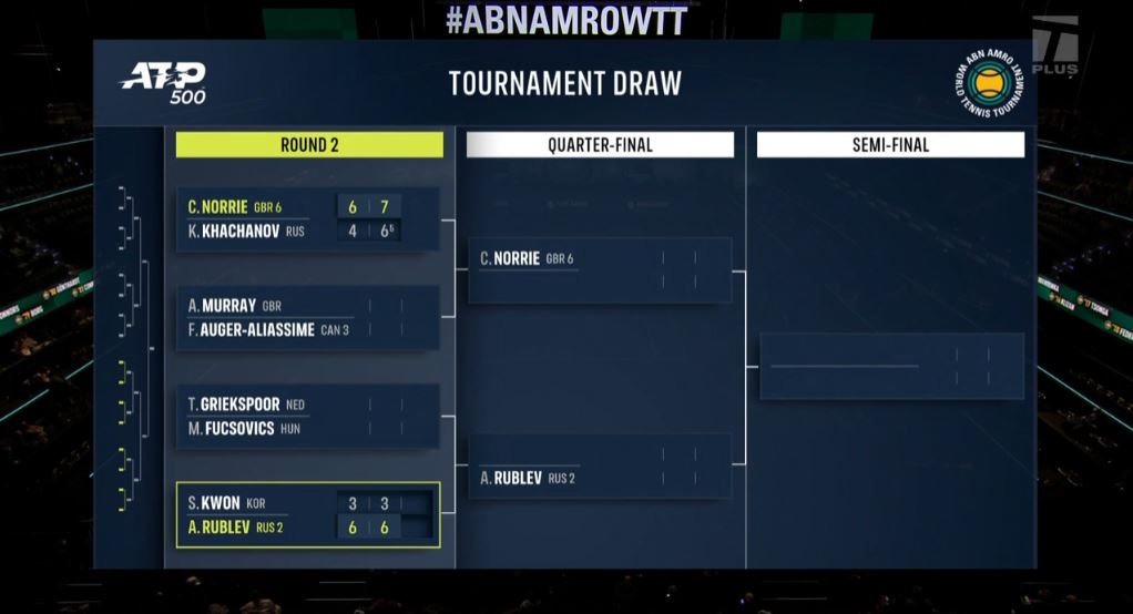 2회전에서 안드레이 루블레프(러시아, 세계 7위) 선수를 만나 3-6, 3-6으로 패했습니다.