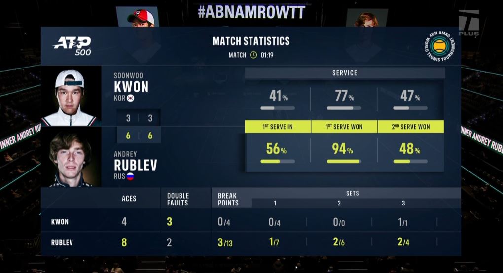 권순우 선수는 1세트에서 정말 아쉽게 본인의 서브를 내주면서 지게 되었습니다.