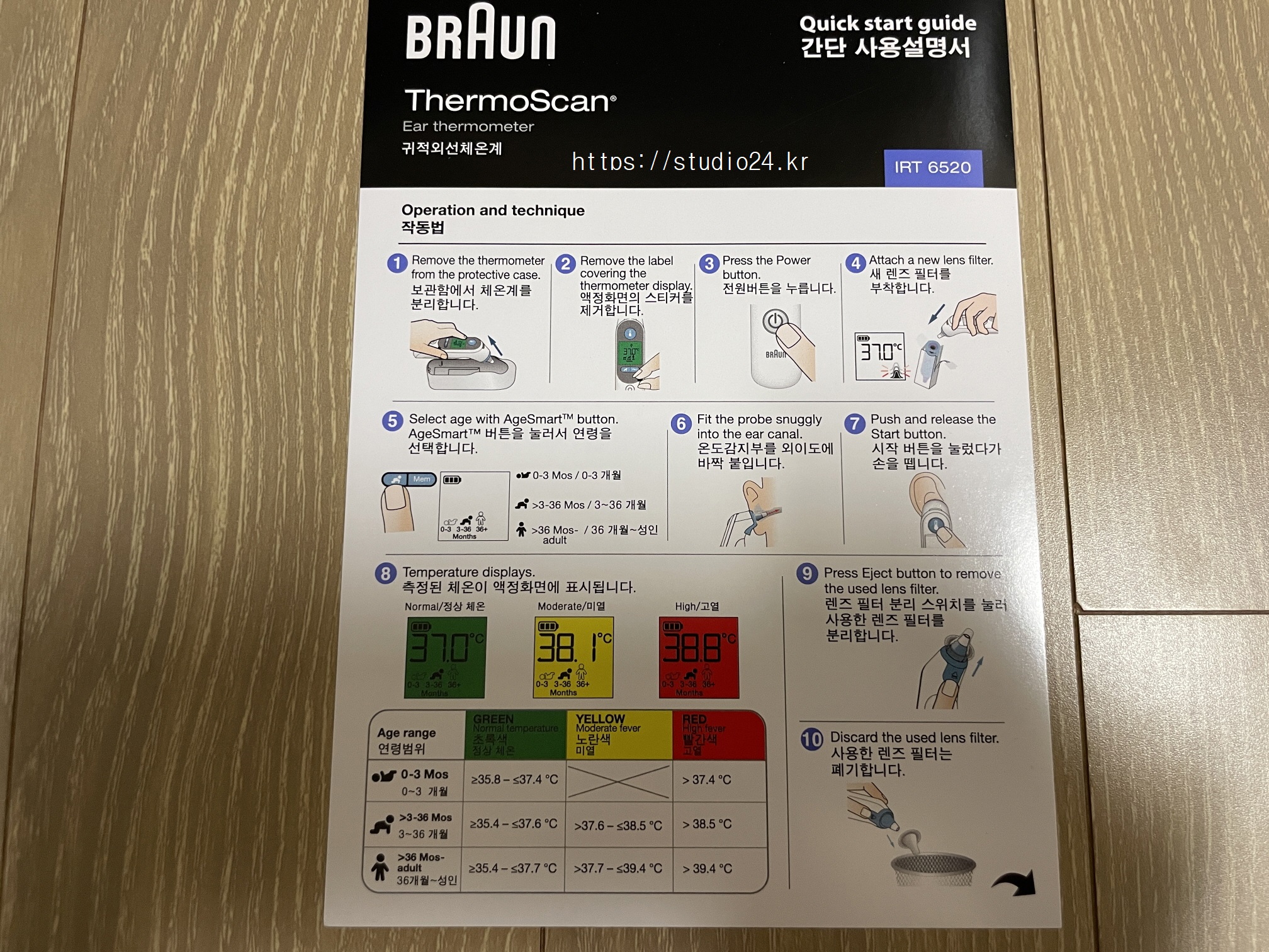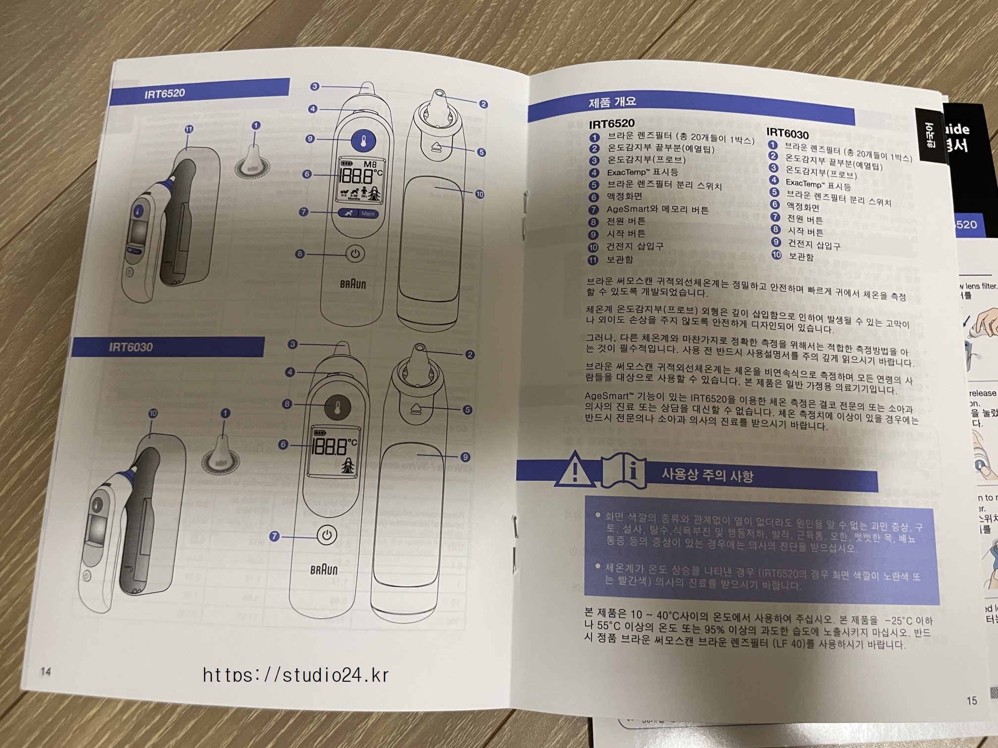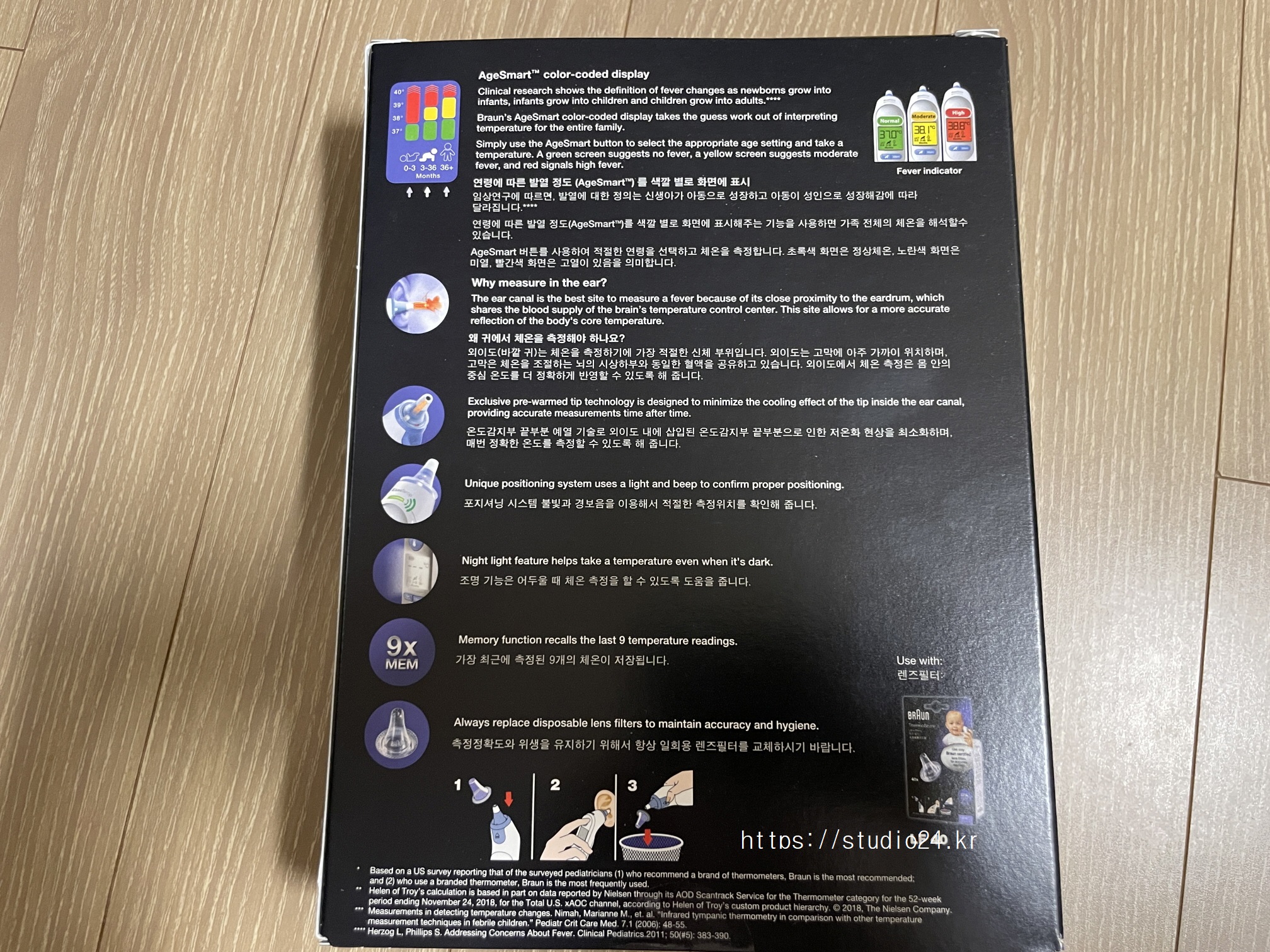 설명서는 한글로 되어 있었고, 기존에 브라운 체온계를 사용했기에 적응은 쉬웠습니다.