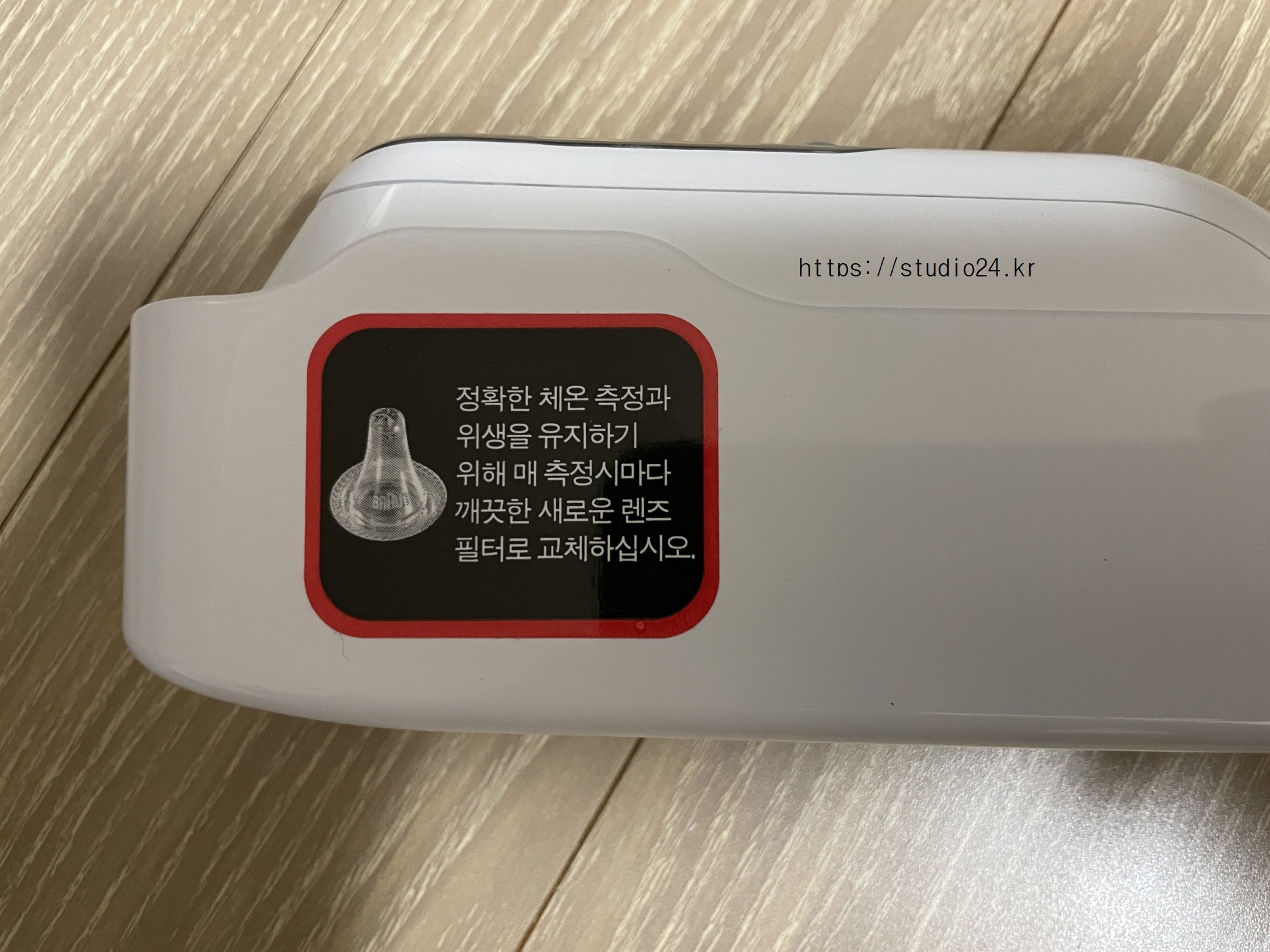 정확한 체온 측정과 위생을 유지하기 위해 깨끗한 렌즈 필터를 사용하라고 되어 있습니다.