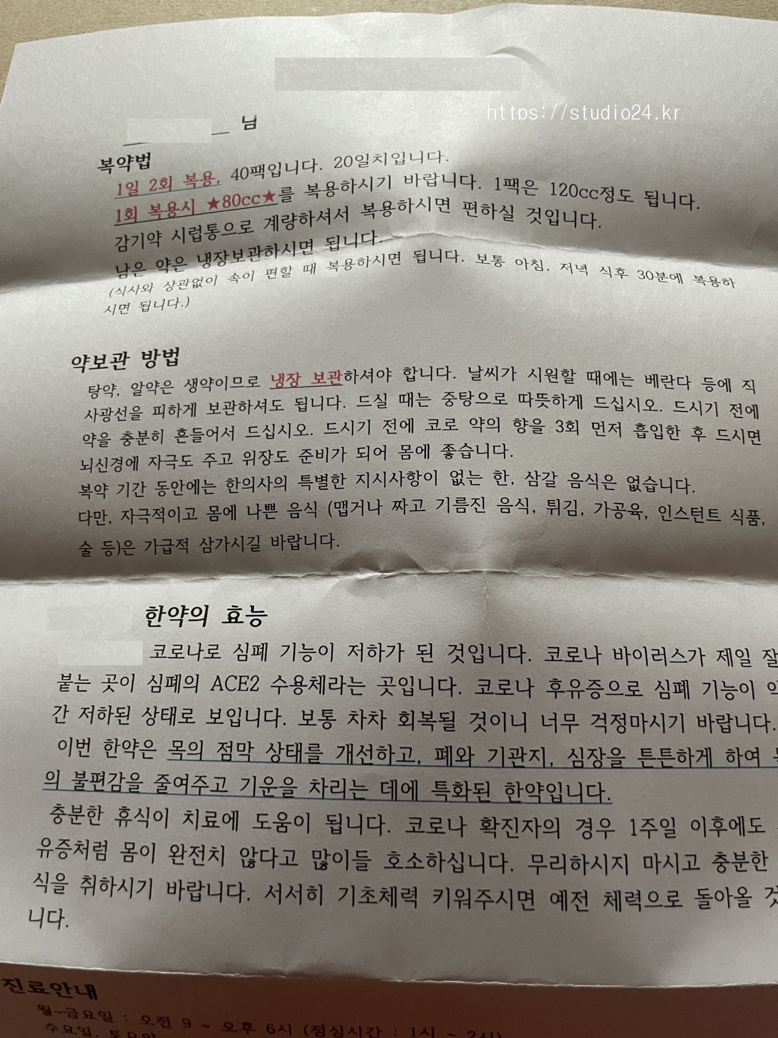 한약은 아침저녁으로 1포~