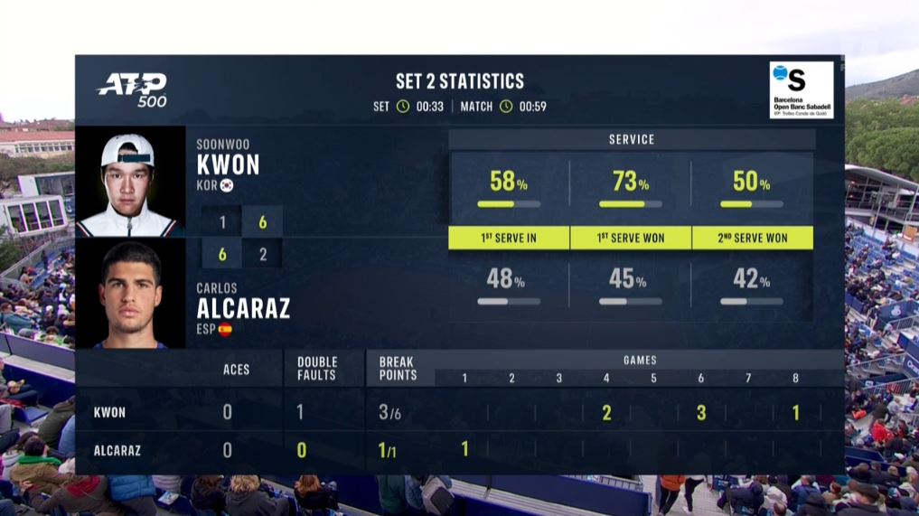 2세트 6-2로 권순우 선수 승!