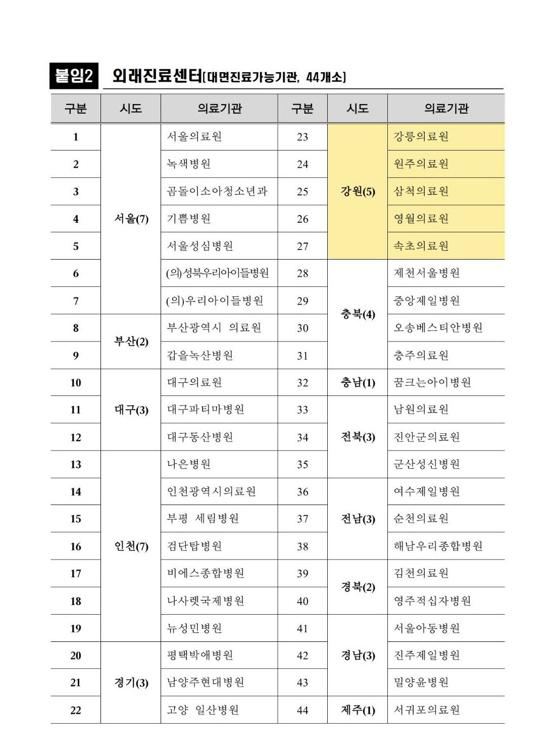 리스트 보시면 지방은 병원이 상대적으로 적습니다.